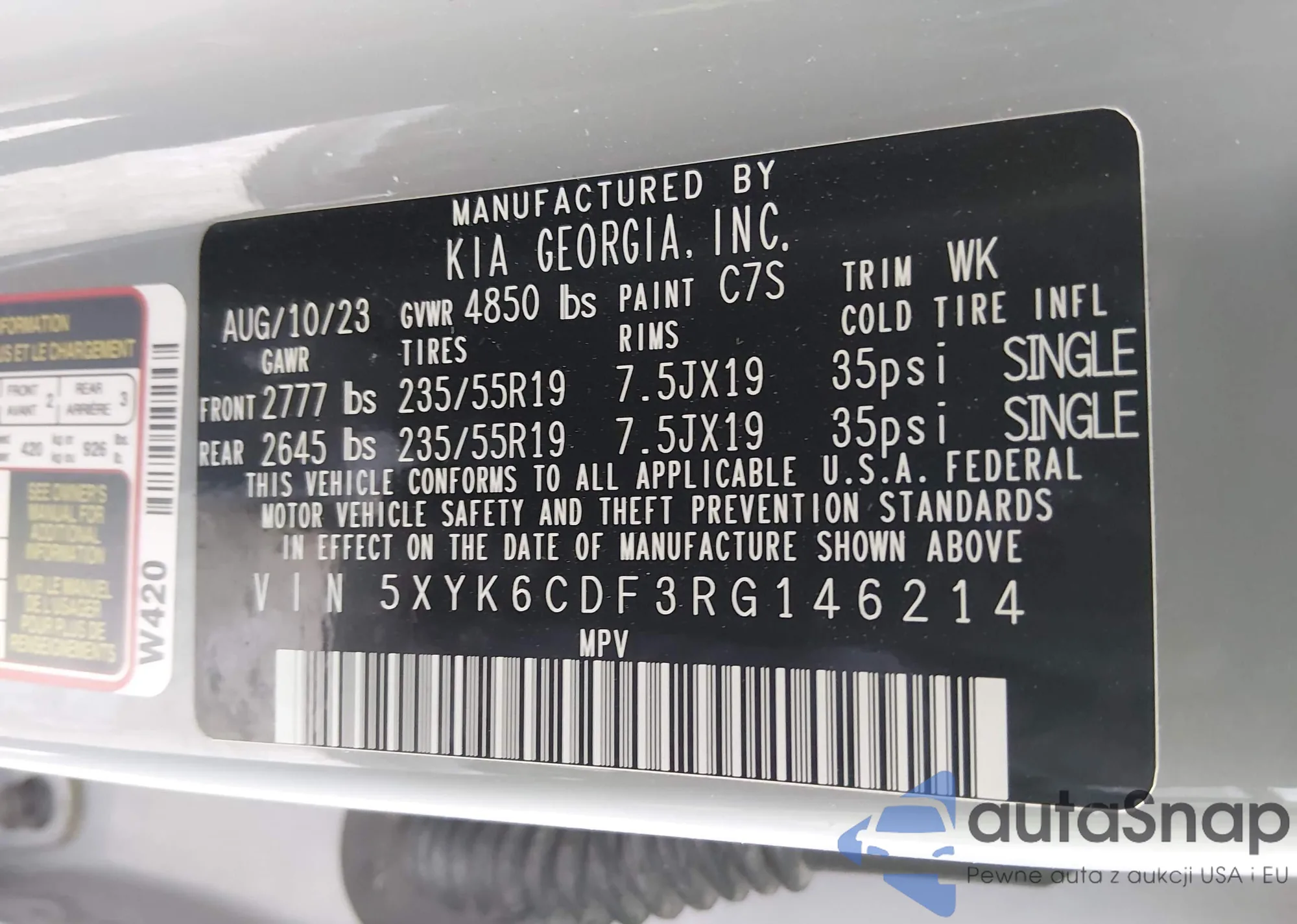 LOT: 44456302 VIN: KNDPU3AF0P7038918