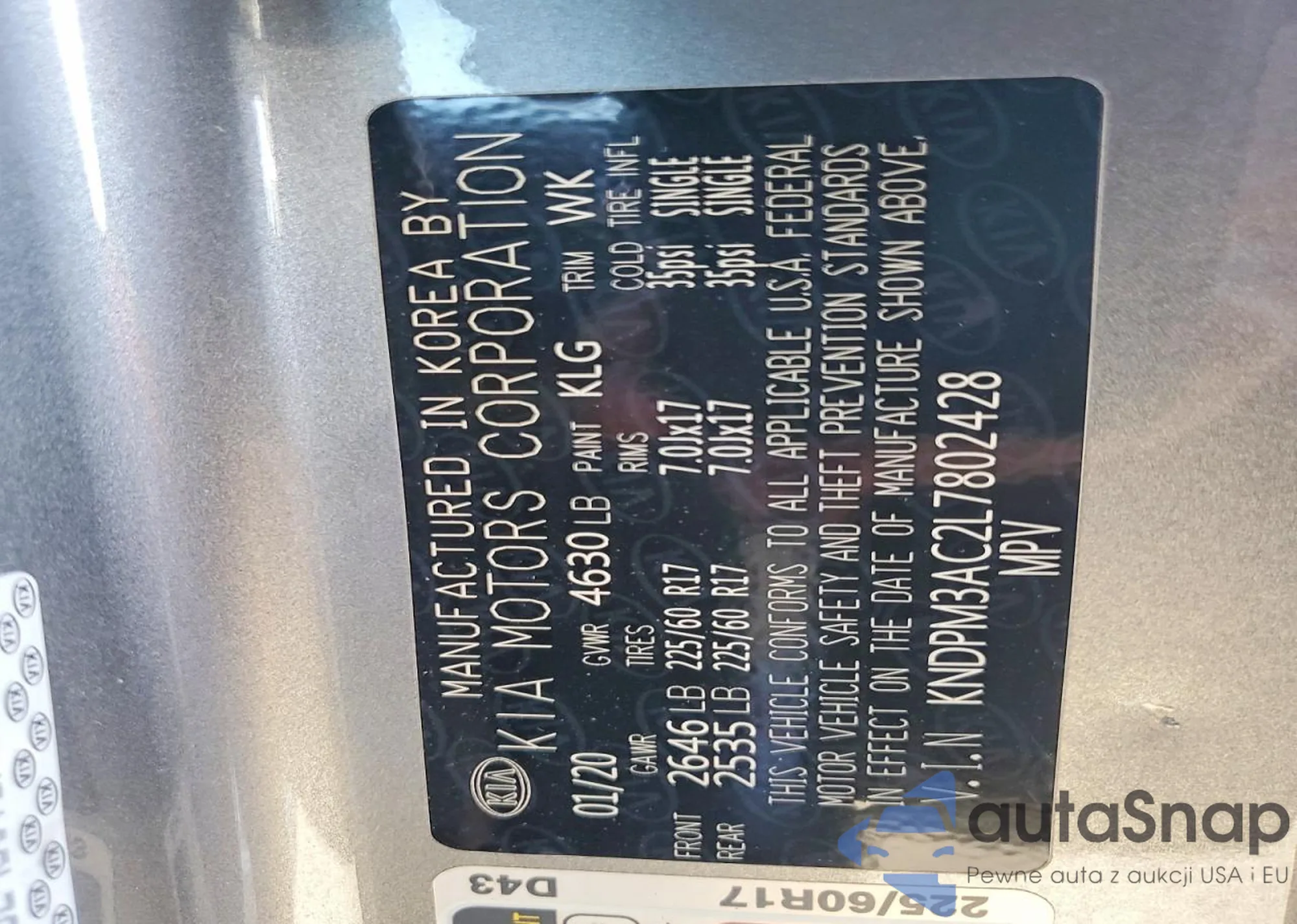 • VIN KNDP63AC4M7913395