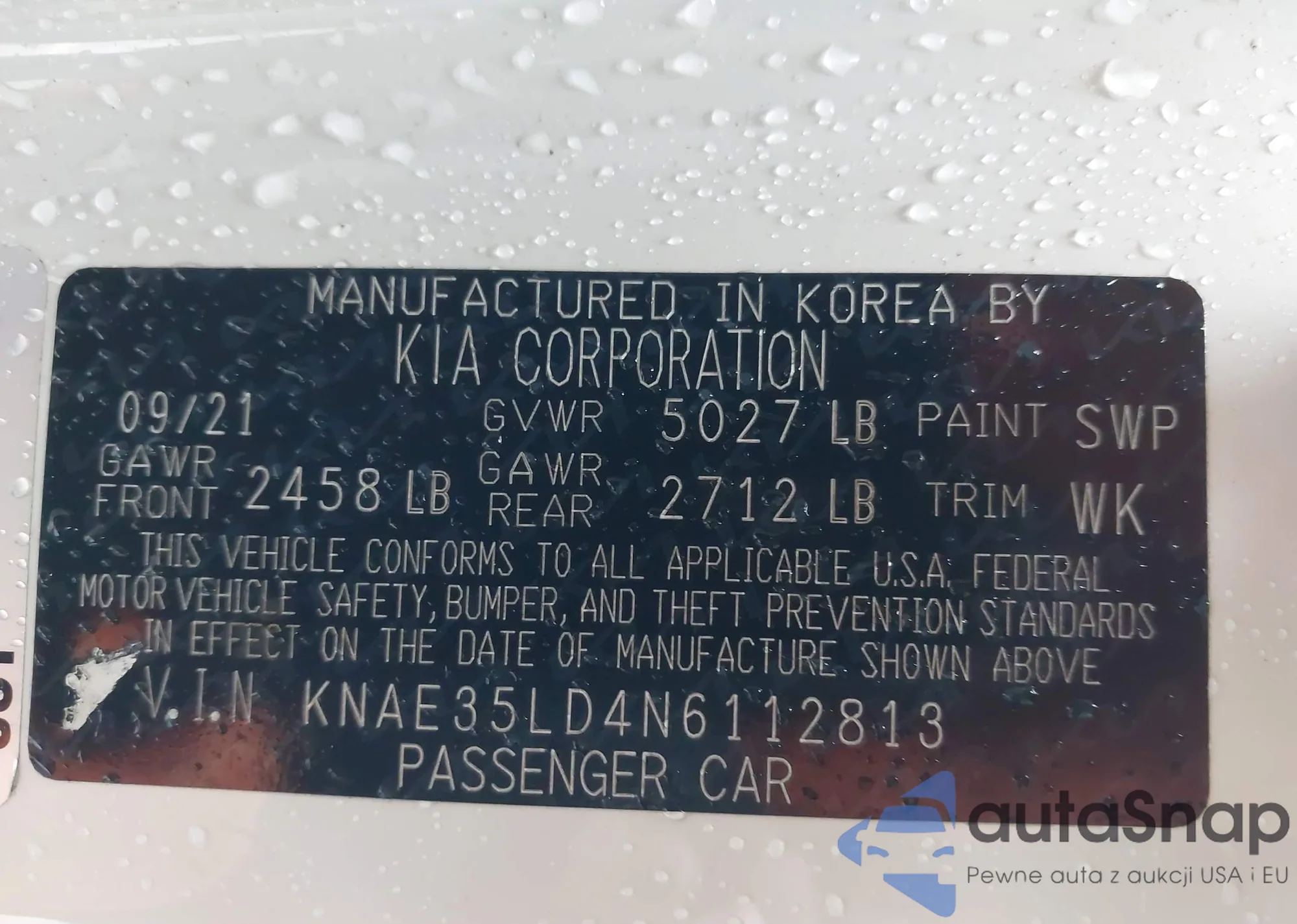 LOT: 43998310 VIN: KNAE35LD4N6112813