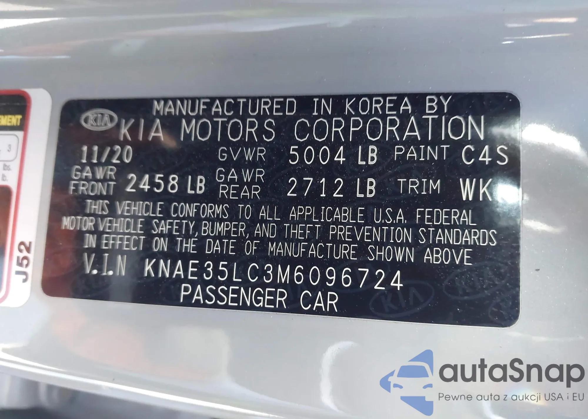 LOT: 43496089 VIN: KNAE35LC3M6096724