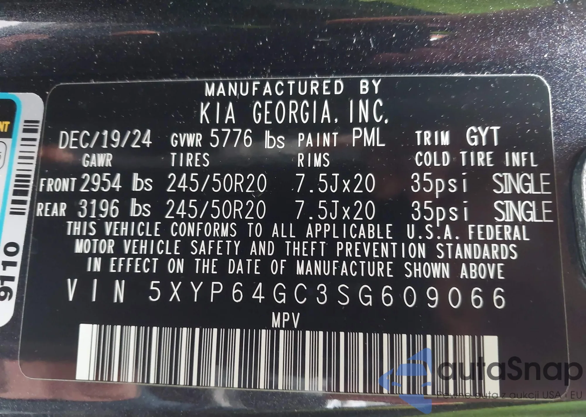 • VIN 5XYP64GC3SG609066