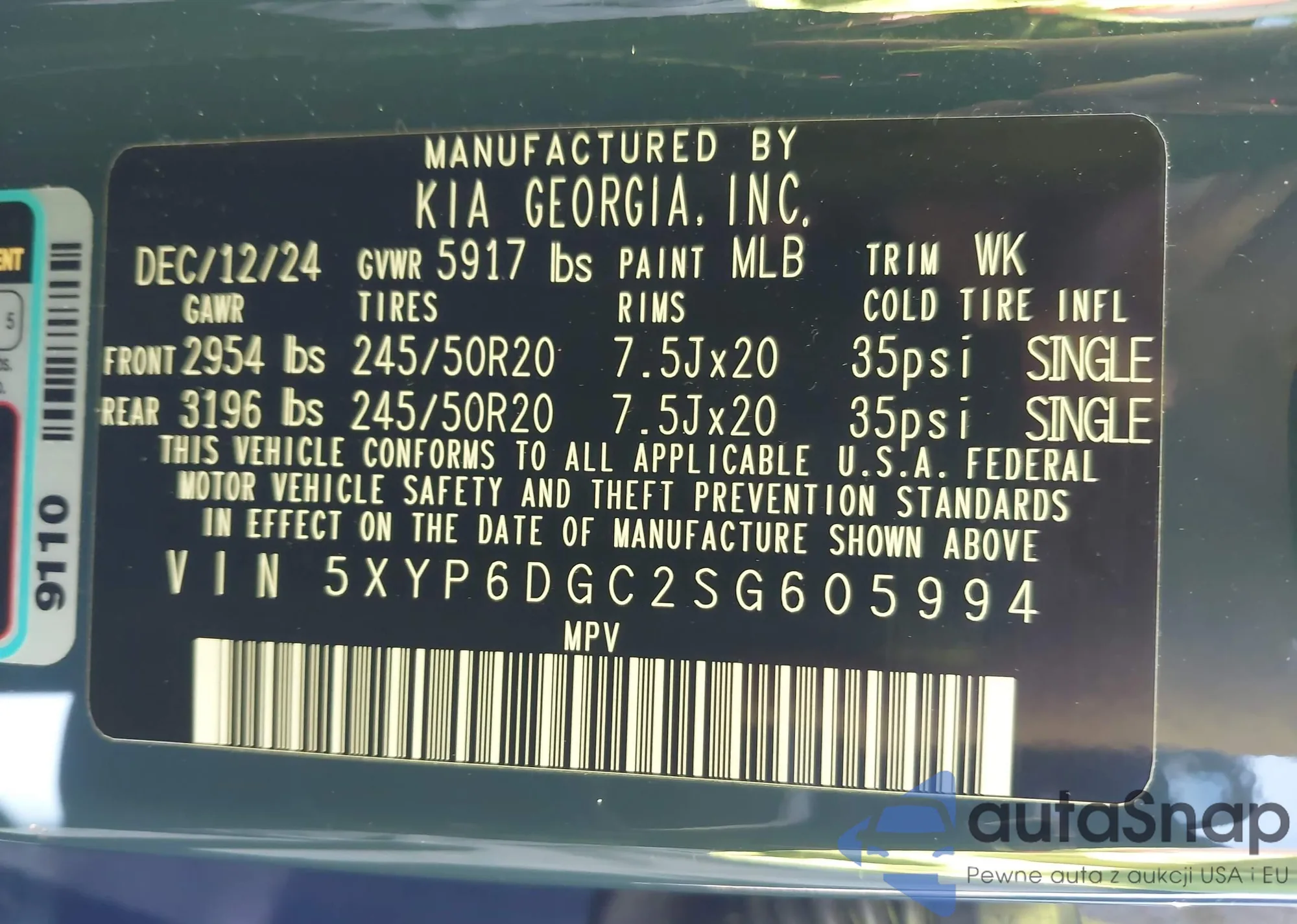 • VIN 5XYP6DGC2SG605994