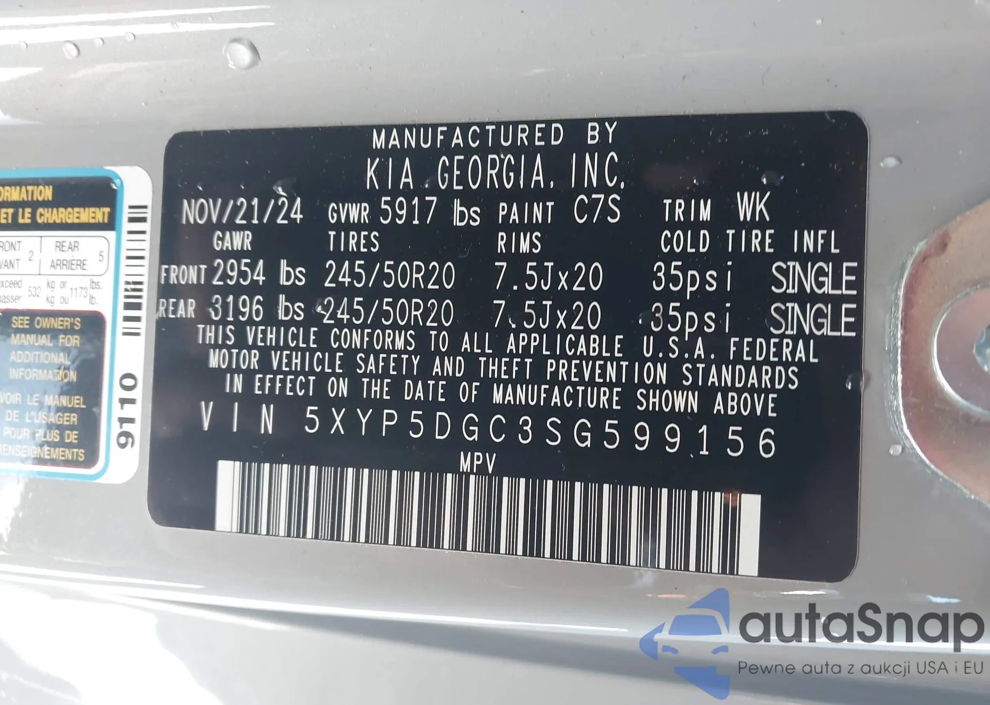 • VIN 5XYP5DGC3SG599156