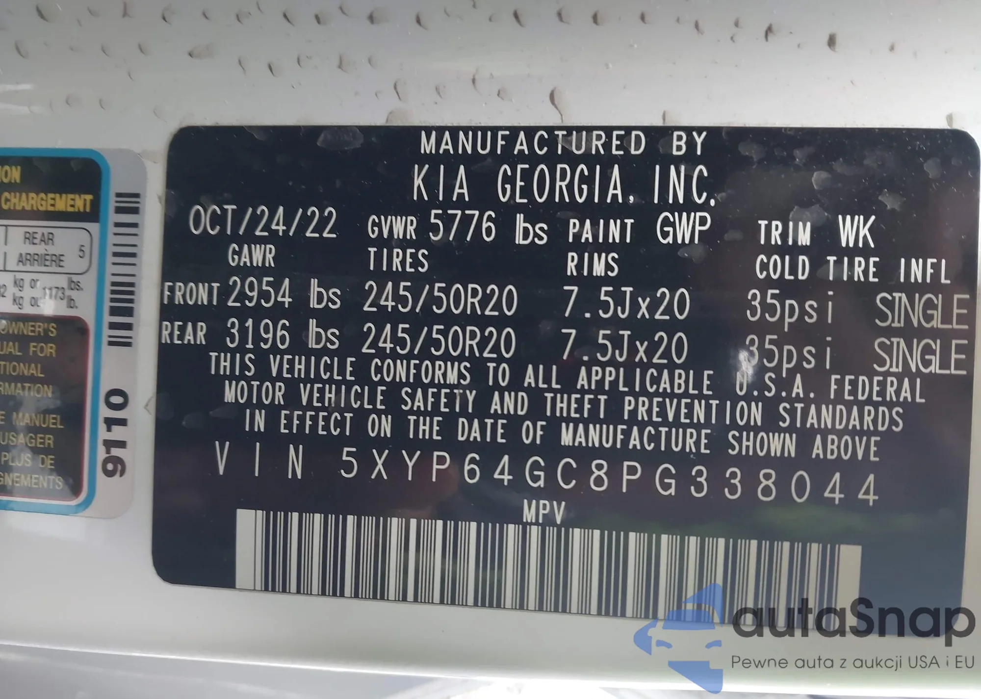 • VIN 5XYP64GC8PG338044
