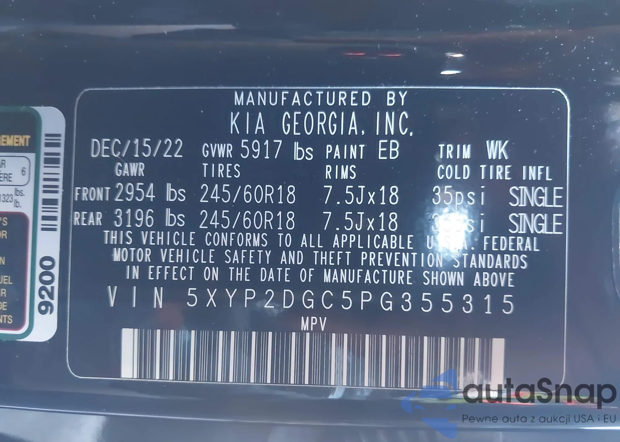 • VIN 5XYP2DGC5PG355315
