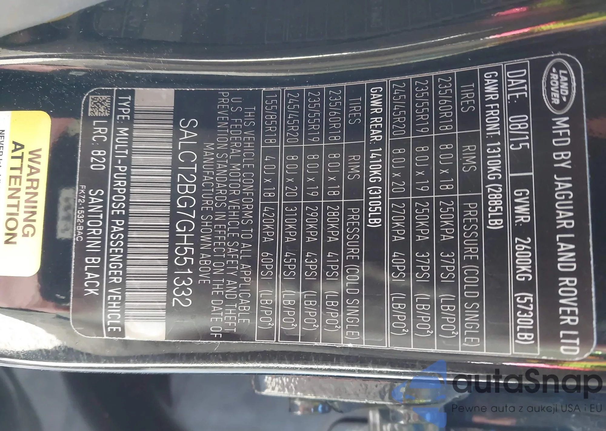 LOT: 44136410 VIN: SALCP2BG8FH541993
