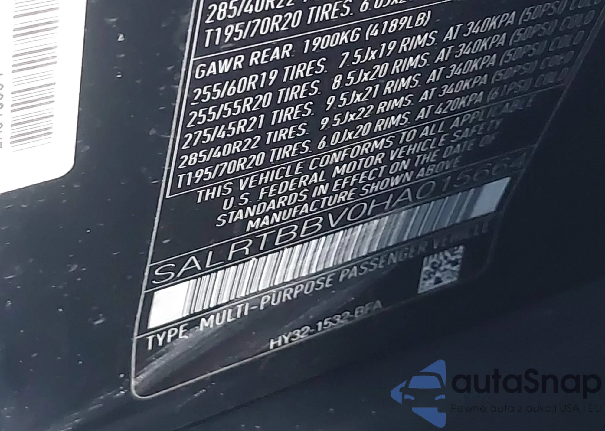 LOT: 44029178 VIN: SALRRBBV3HA044803