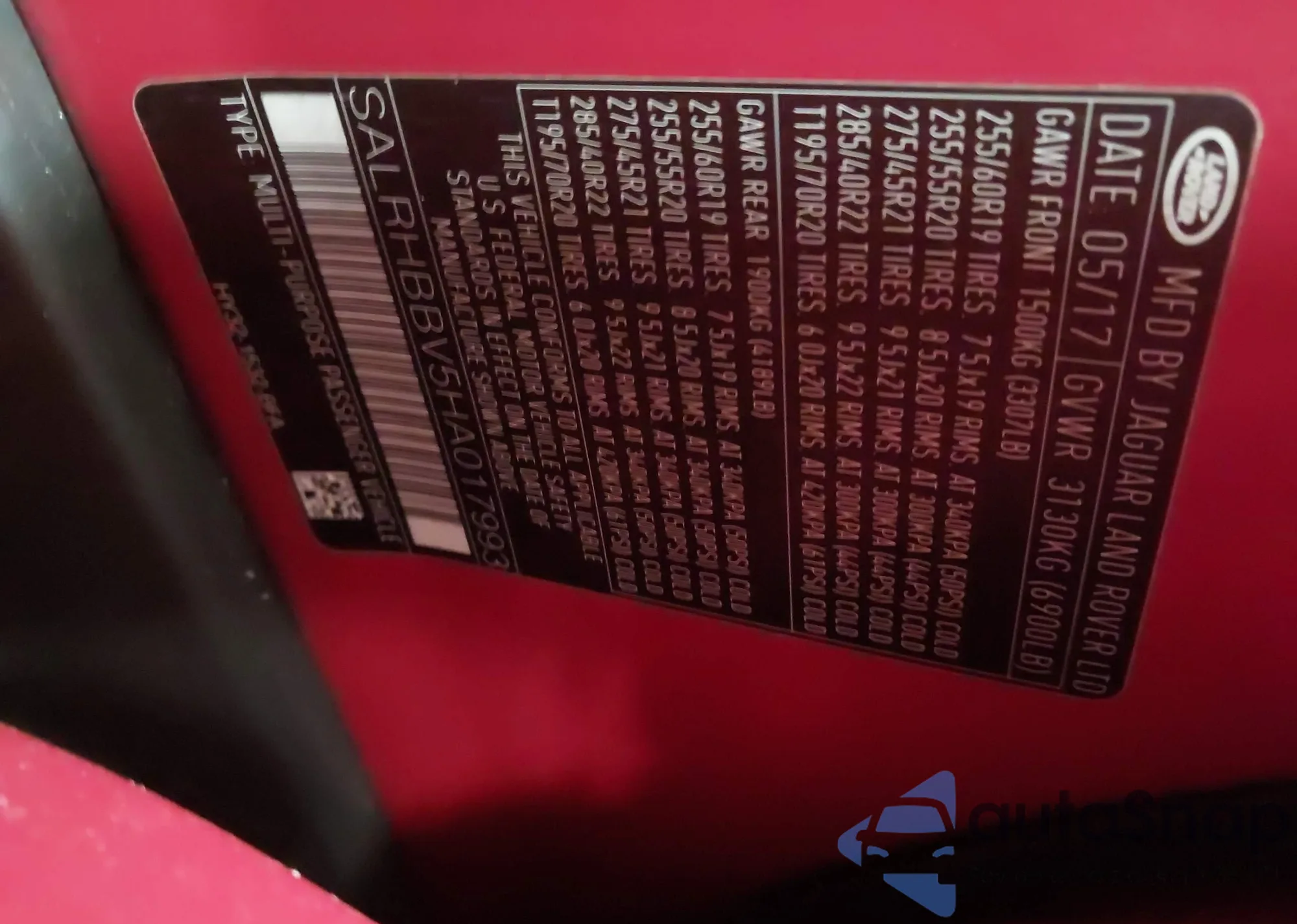• VIN SALRHBBV5HA017993