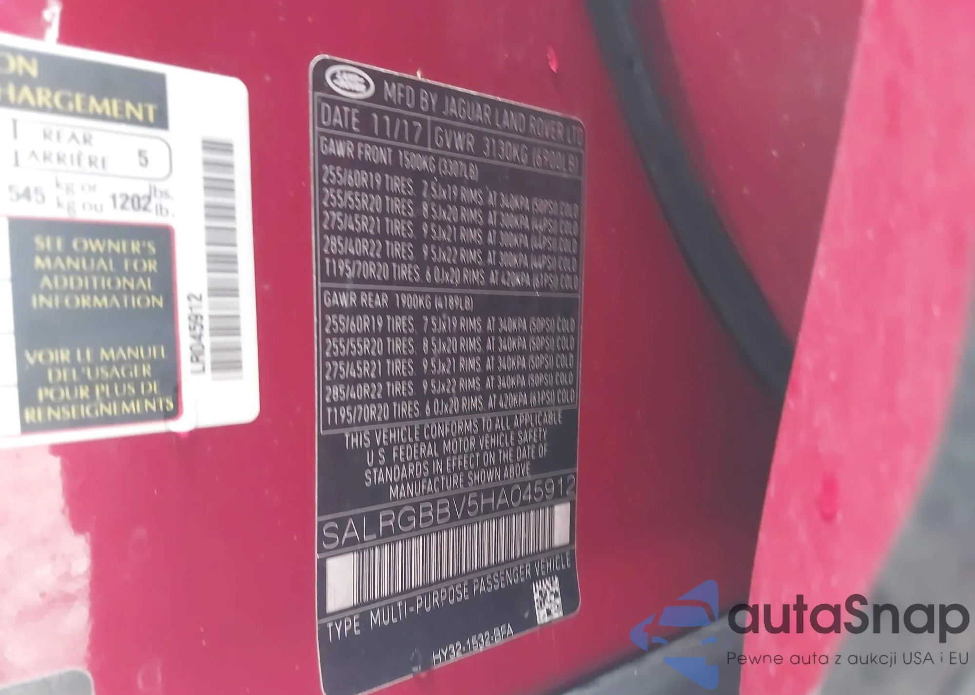 • VIN SALRGBBV5HA045912