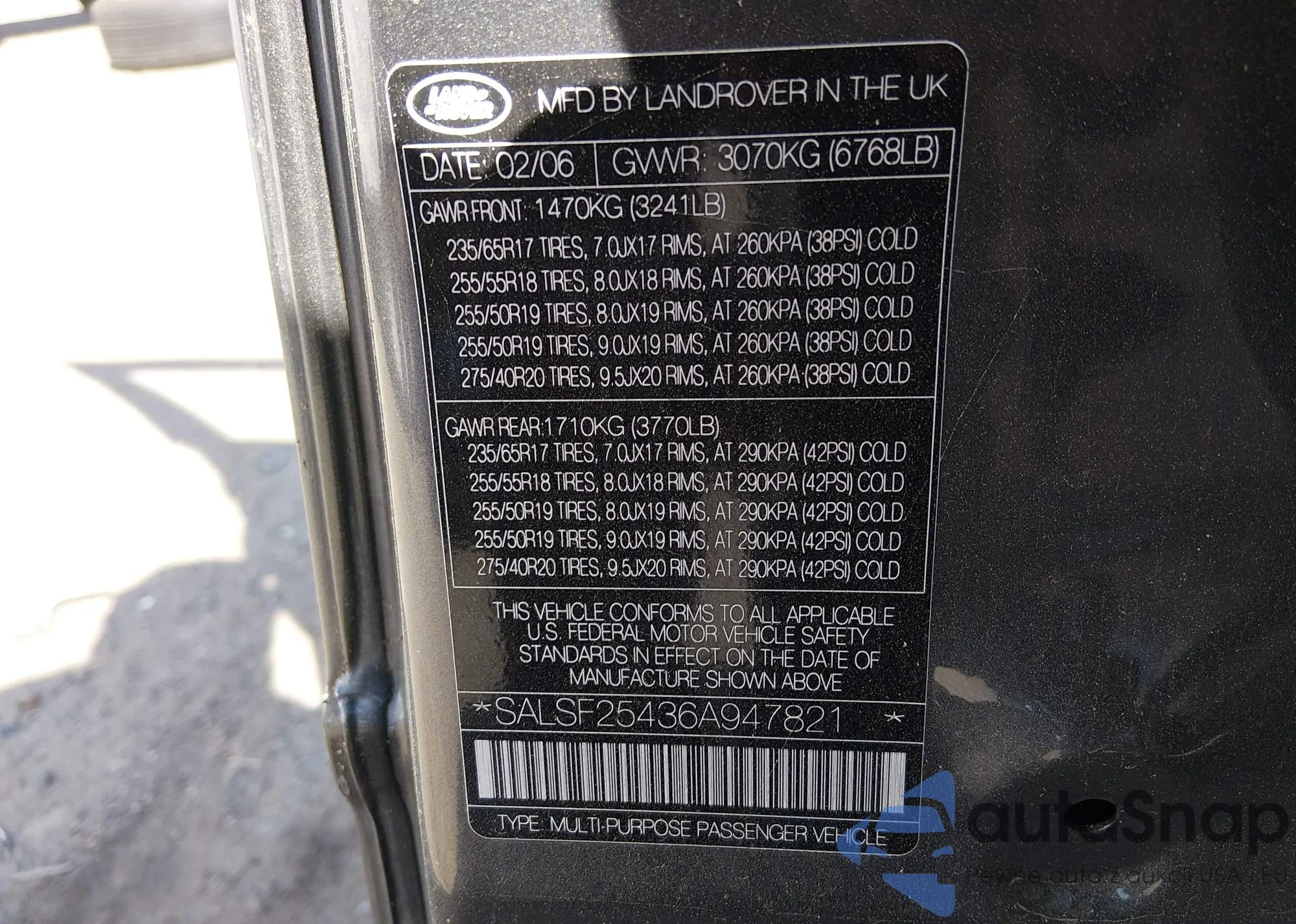 • VIN SALSF25436A947821