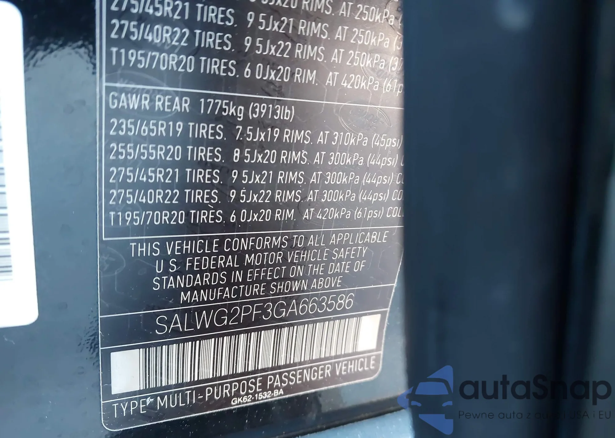 • VIN SALWG2PF3GA663586