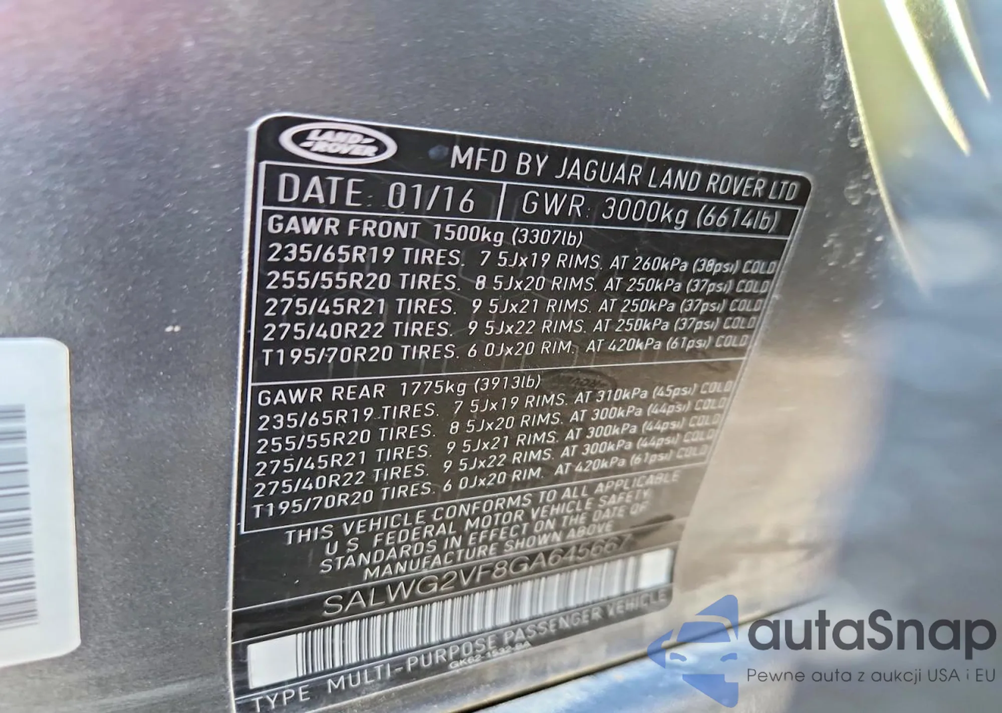 • VIN SALWG2VF8GA645667