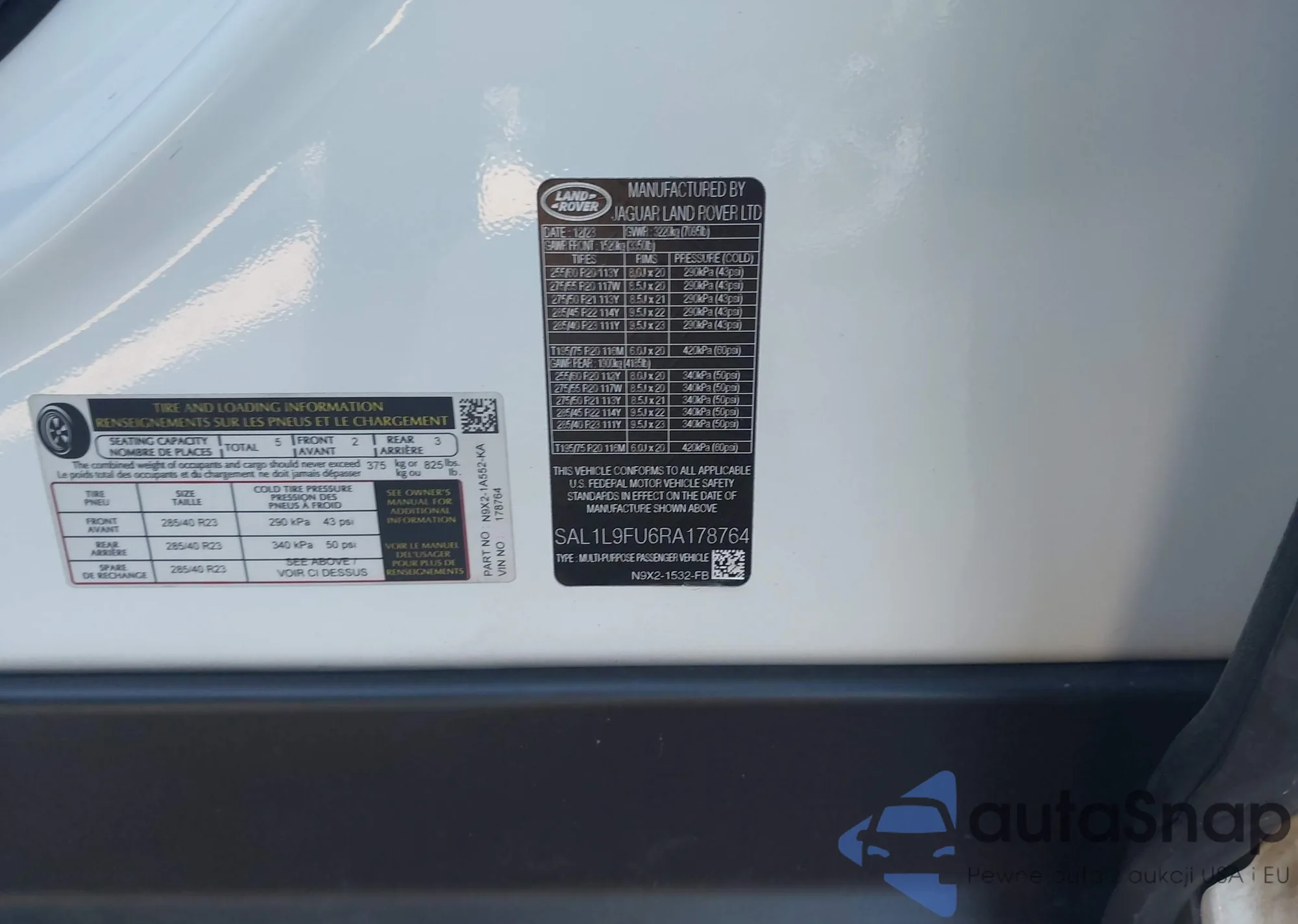 • VIN SAL1L9FU6RA178764