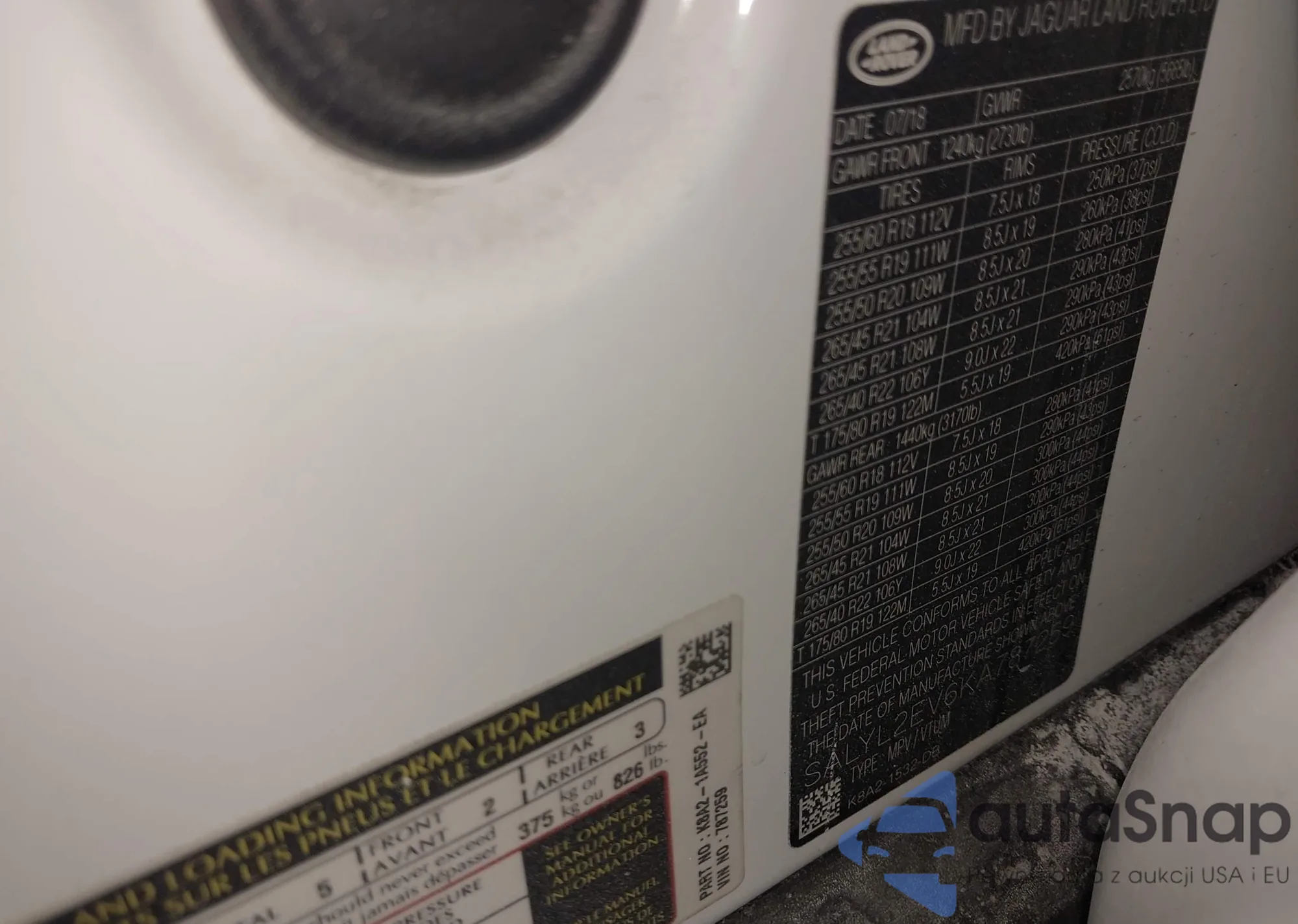 • VIN SALYL2EV6KA787259