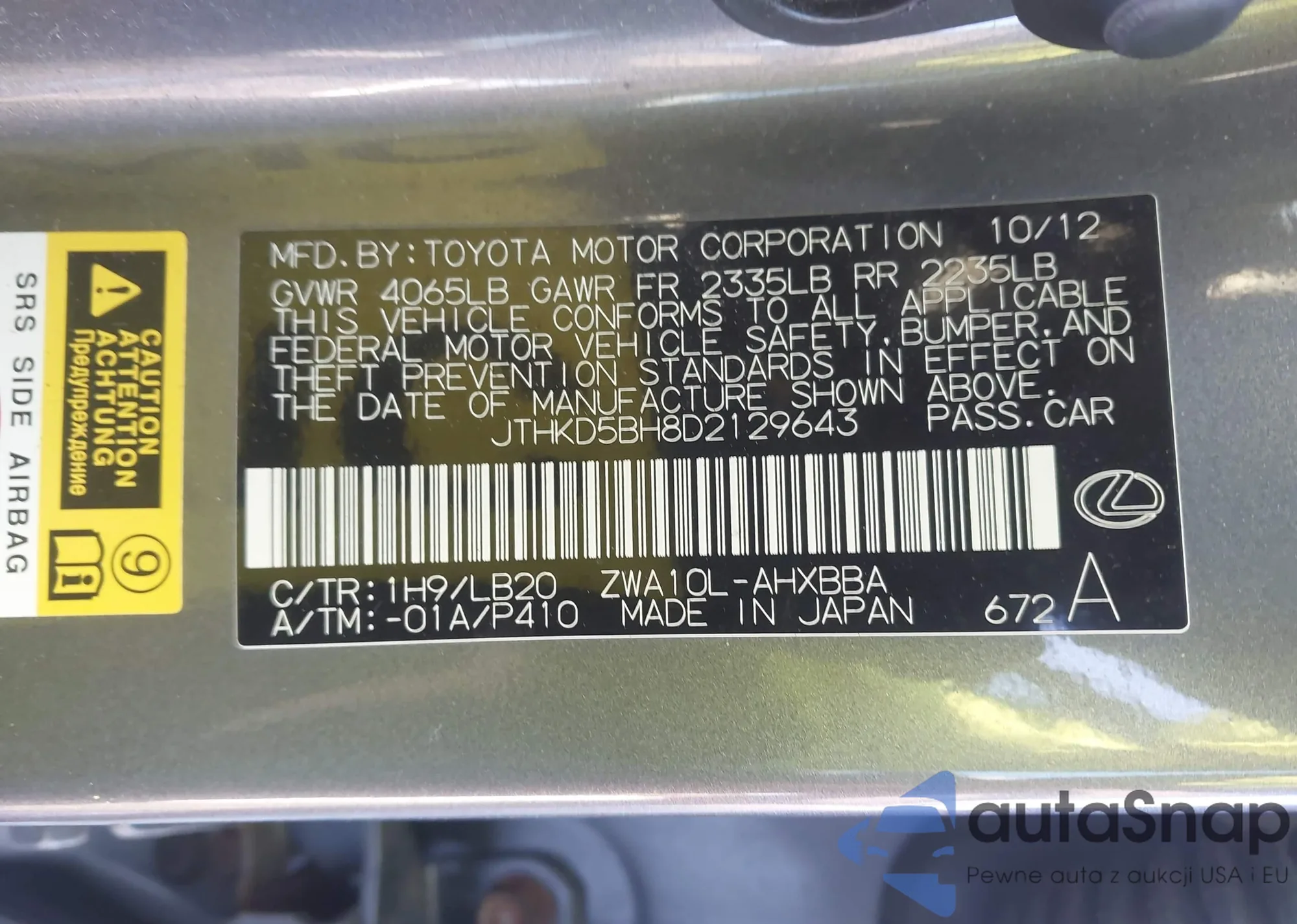 • VIN JTHKD5BH8D2129643