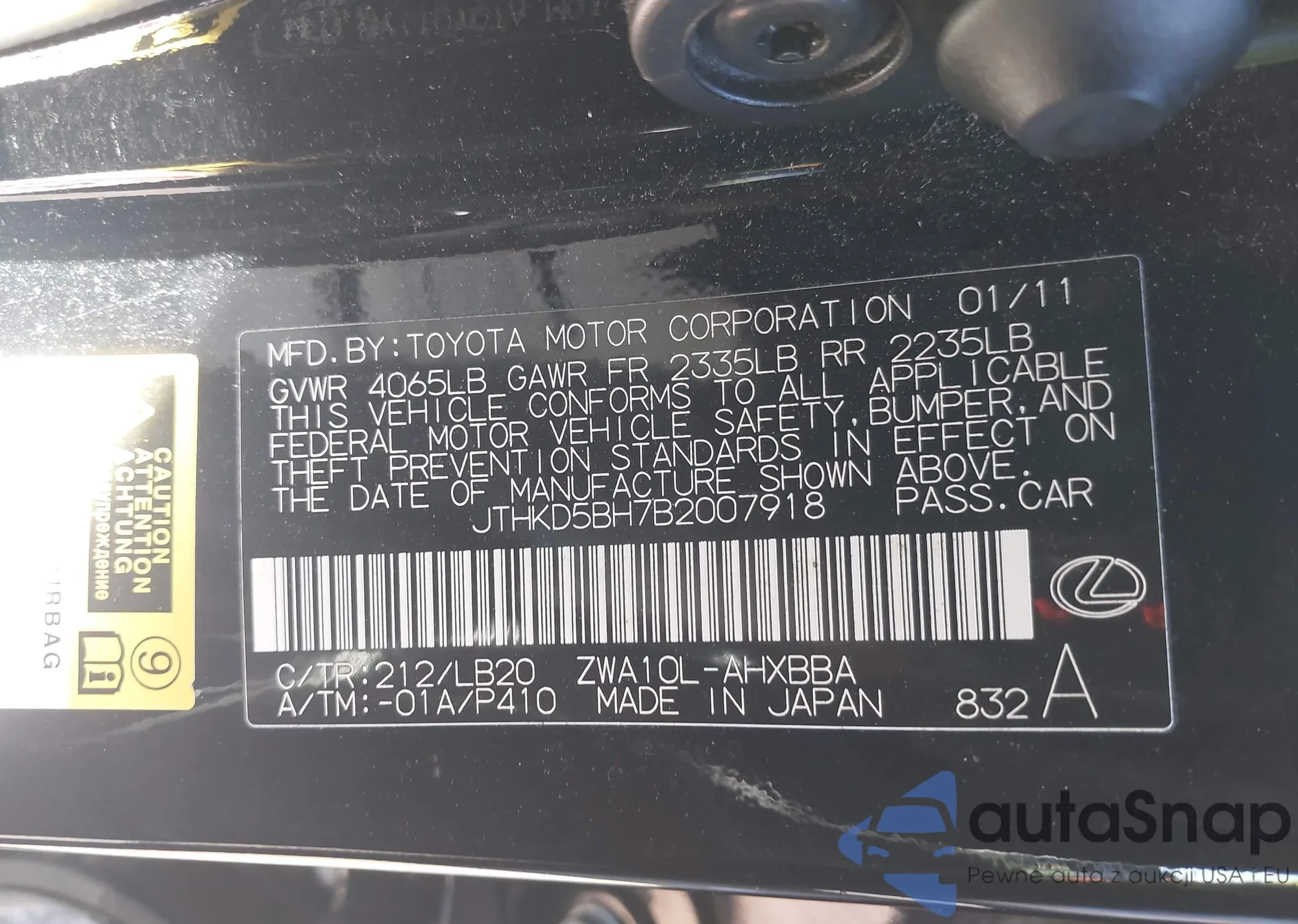 • VIN JTHKD5BH7B2007918