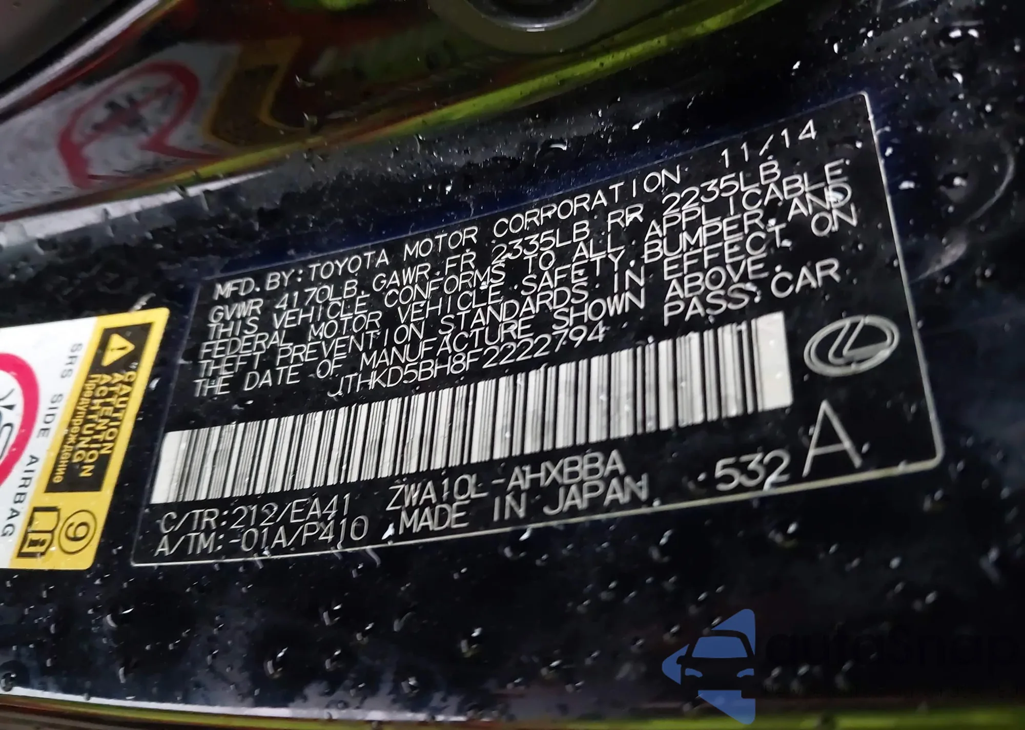 • VIN JTHKD5BH8F2222794