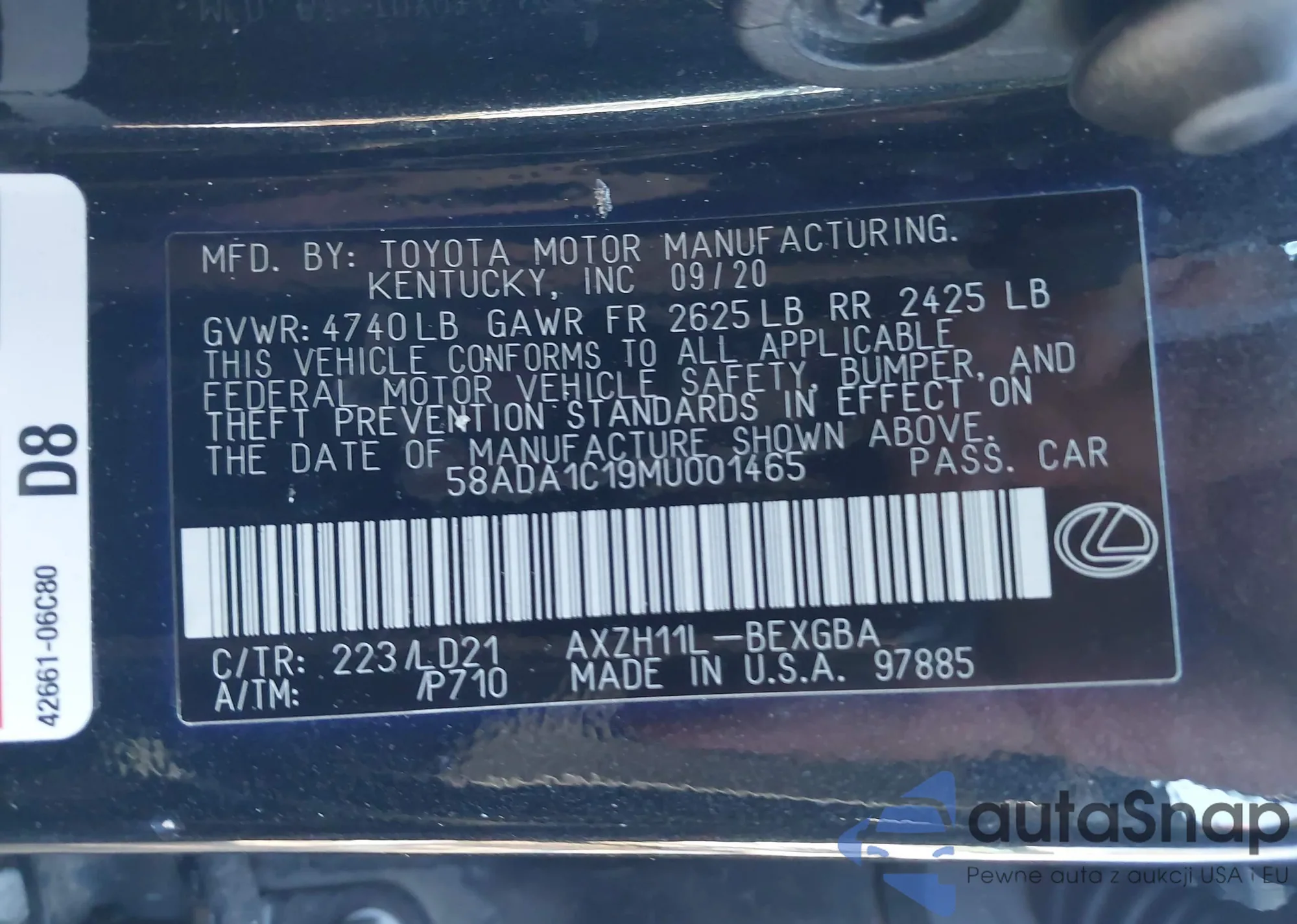 LOT: 43707004 VIN: 58ADZ1B11MU099563