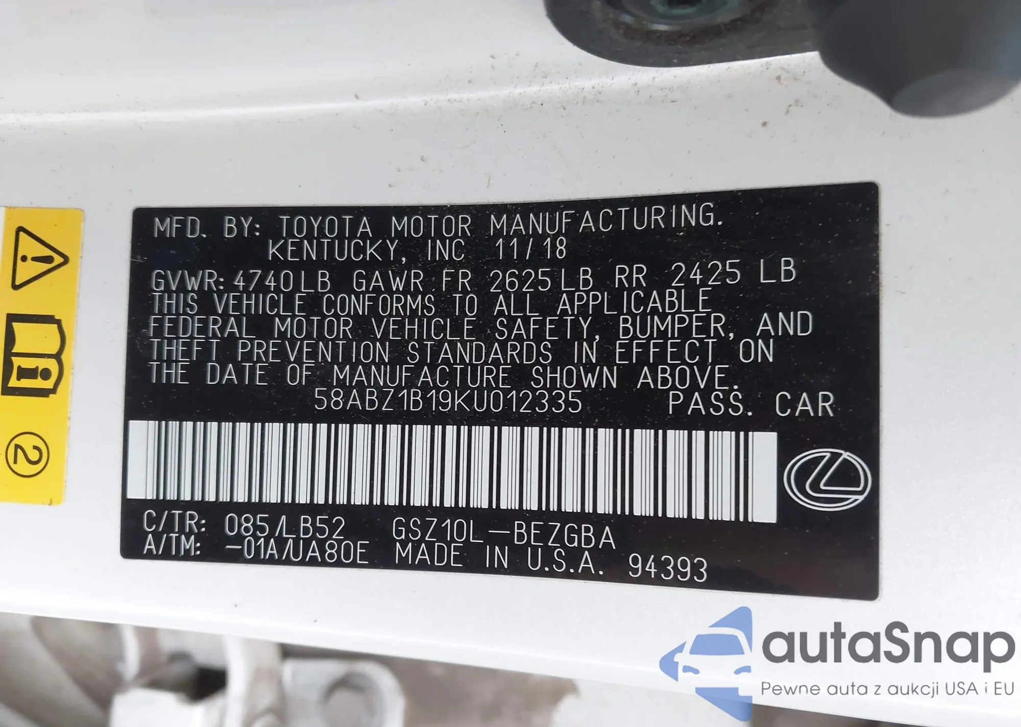 • VIN 58ABZ1B19KU012335