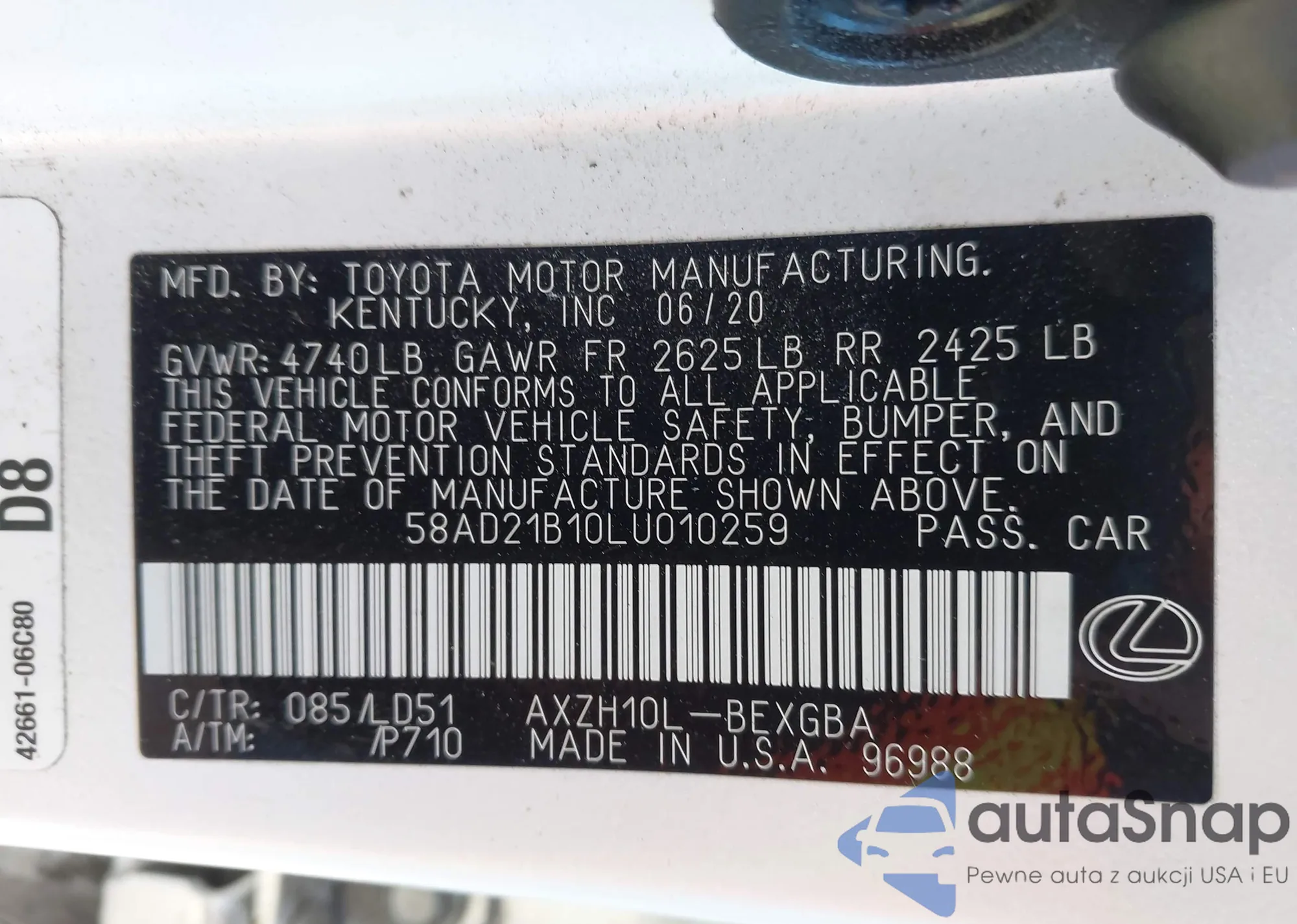 • VIN 58AD21B10LU010259