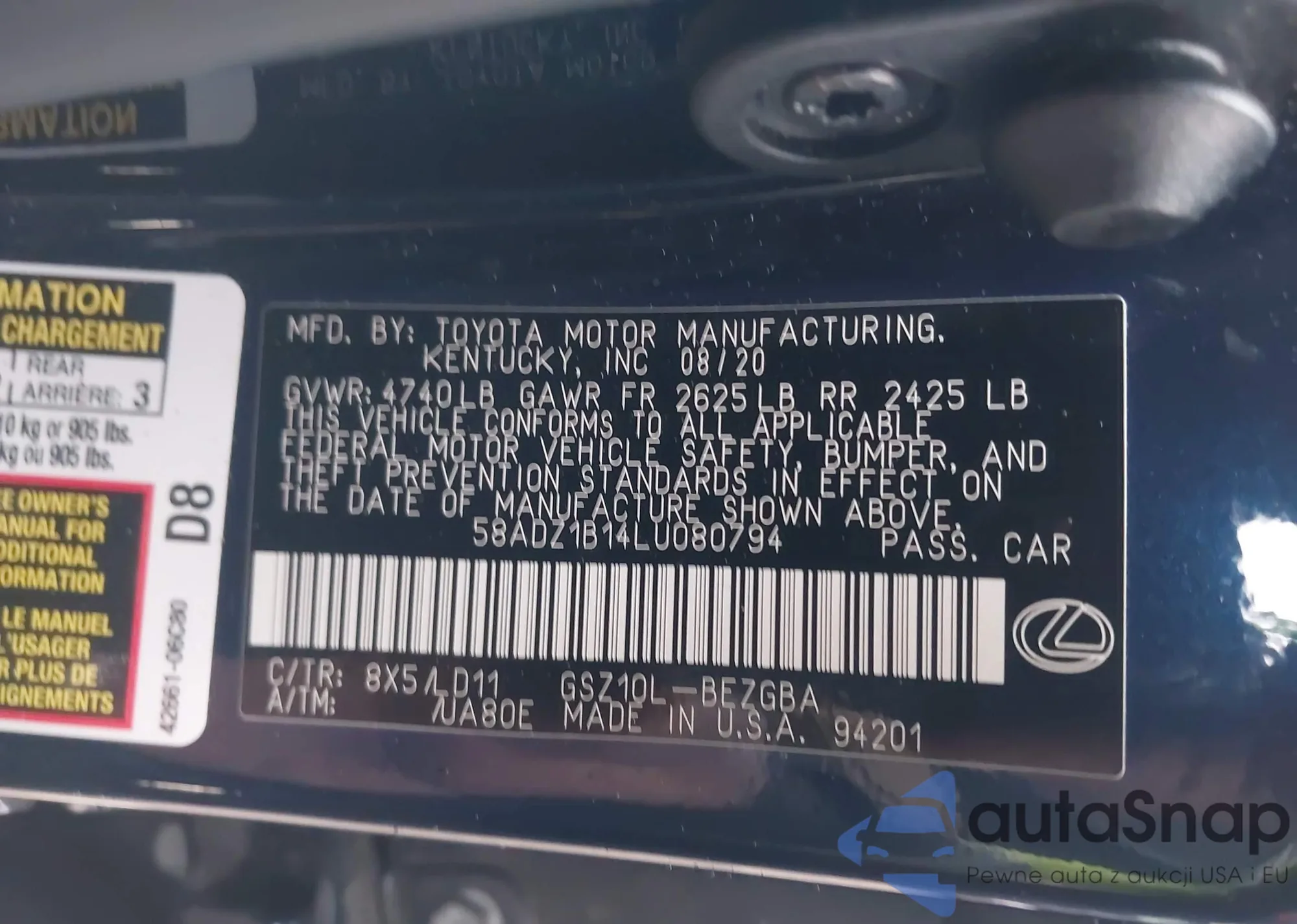 • VIN 58ACZ1B16LU056282