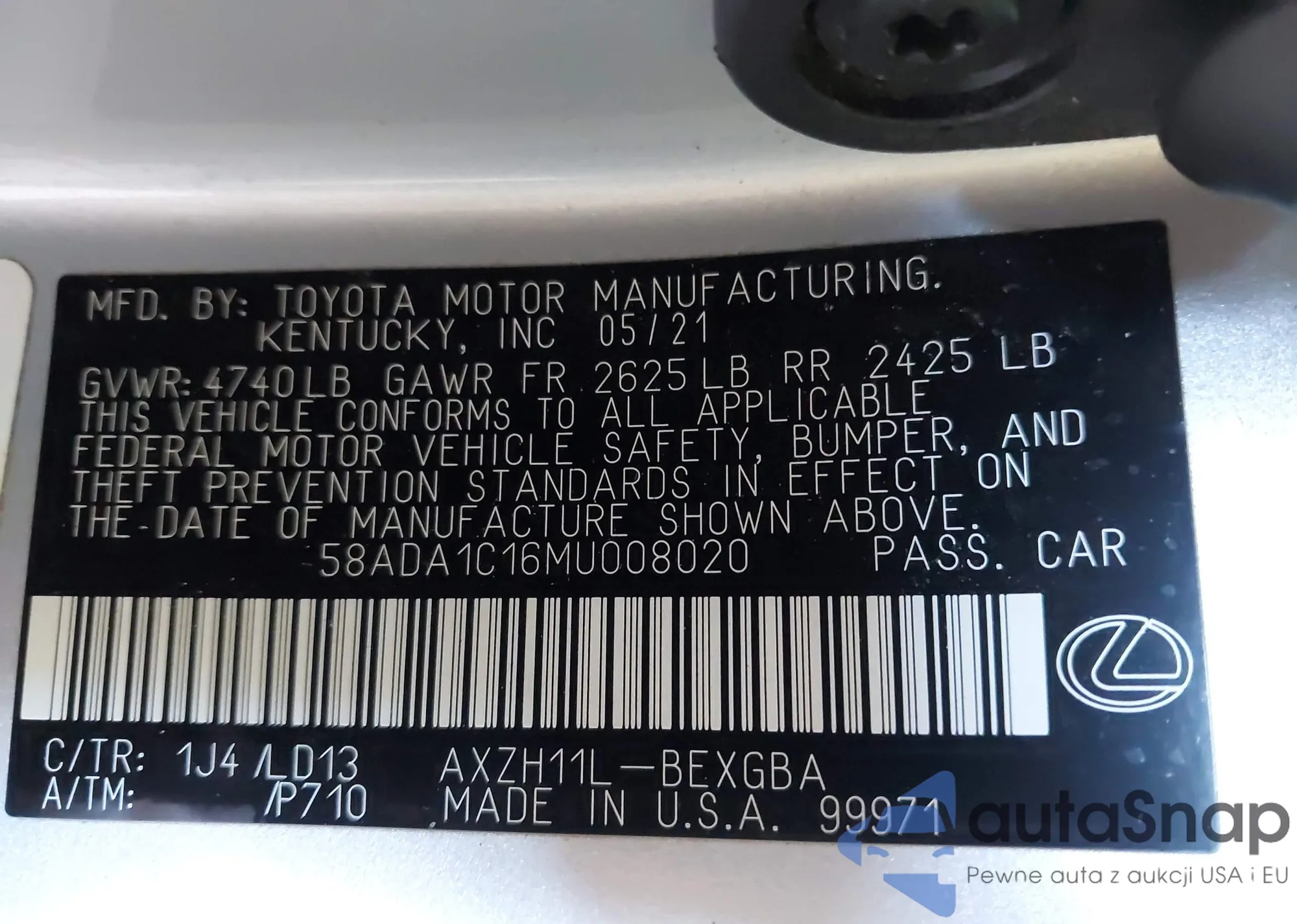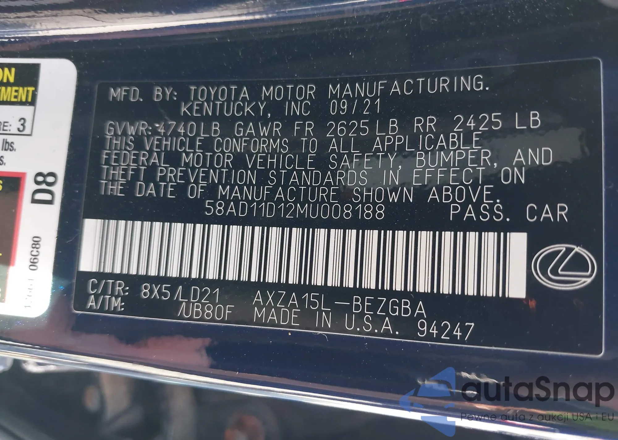 LOT: 43189081 VIN: 58AD11D12MU008188