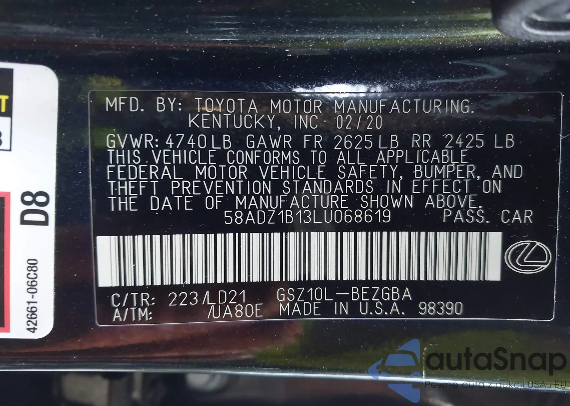 • VIN 58ACZ1B13LU080510