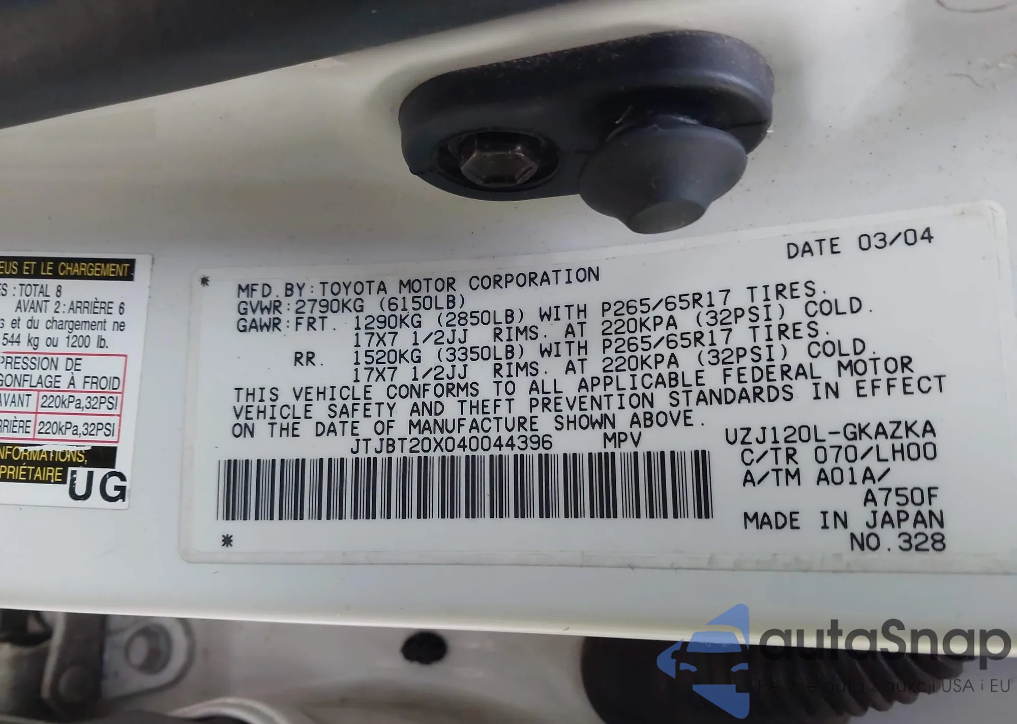 LOT: 43917153 VIN: JTJBT20X040044396