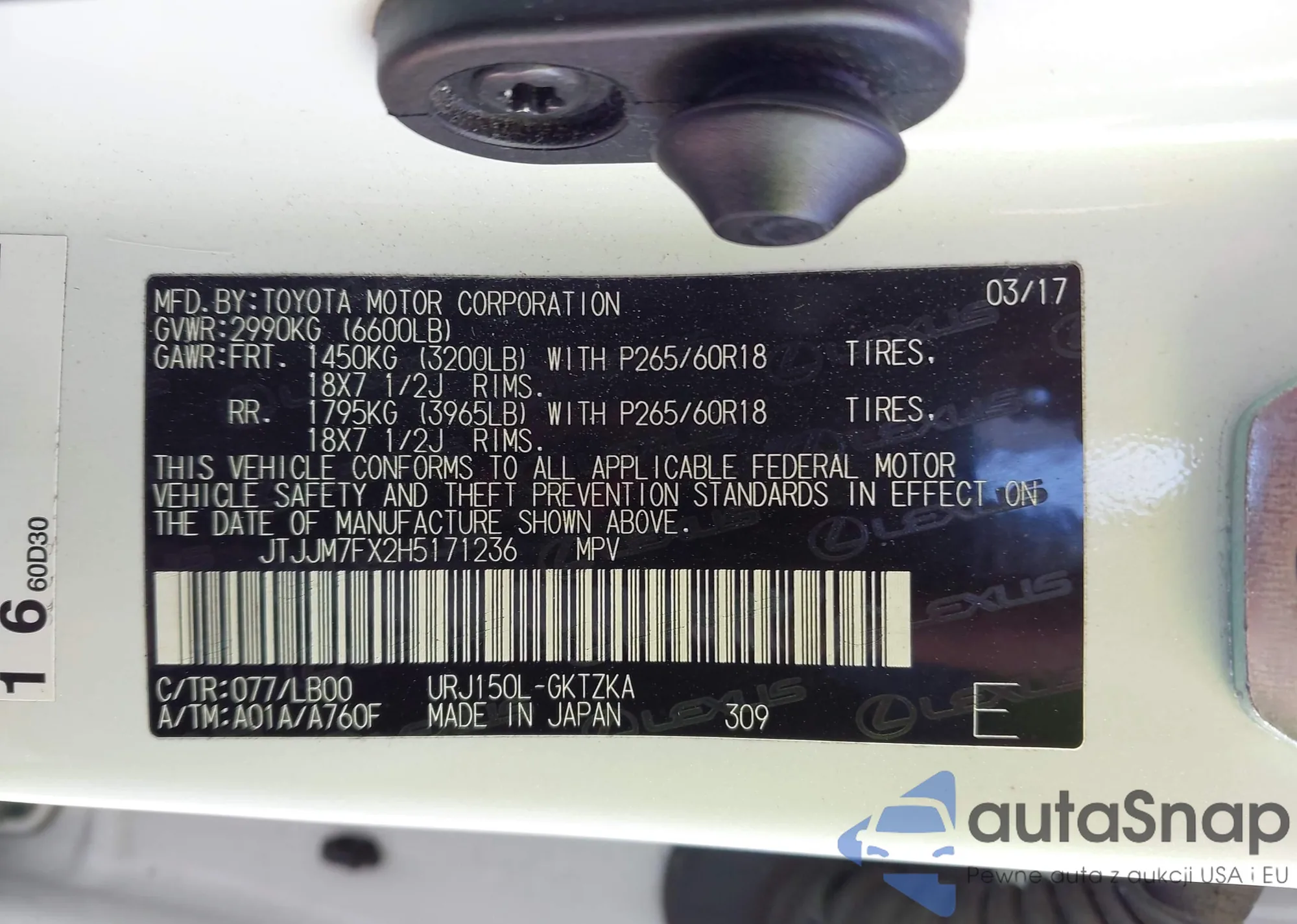 LOT: 44354994 VIN: JTJJM7FX2H5171236