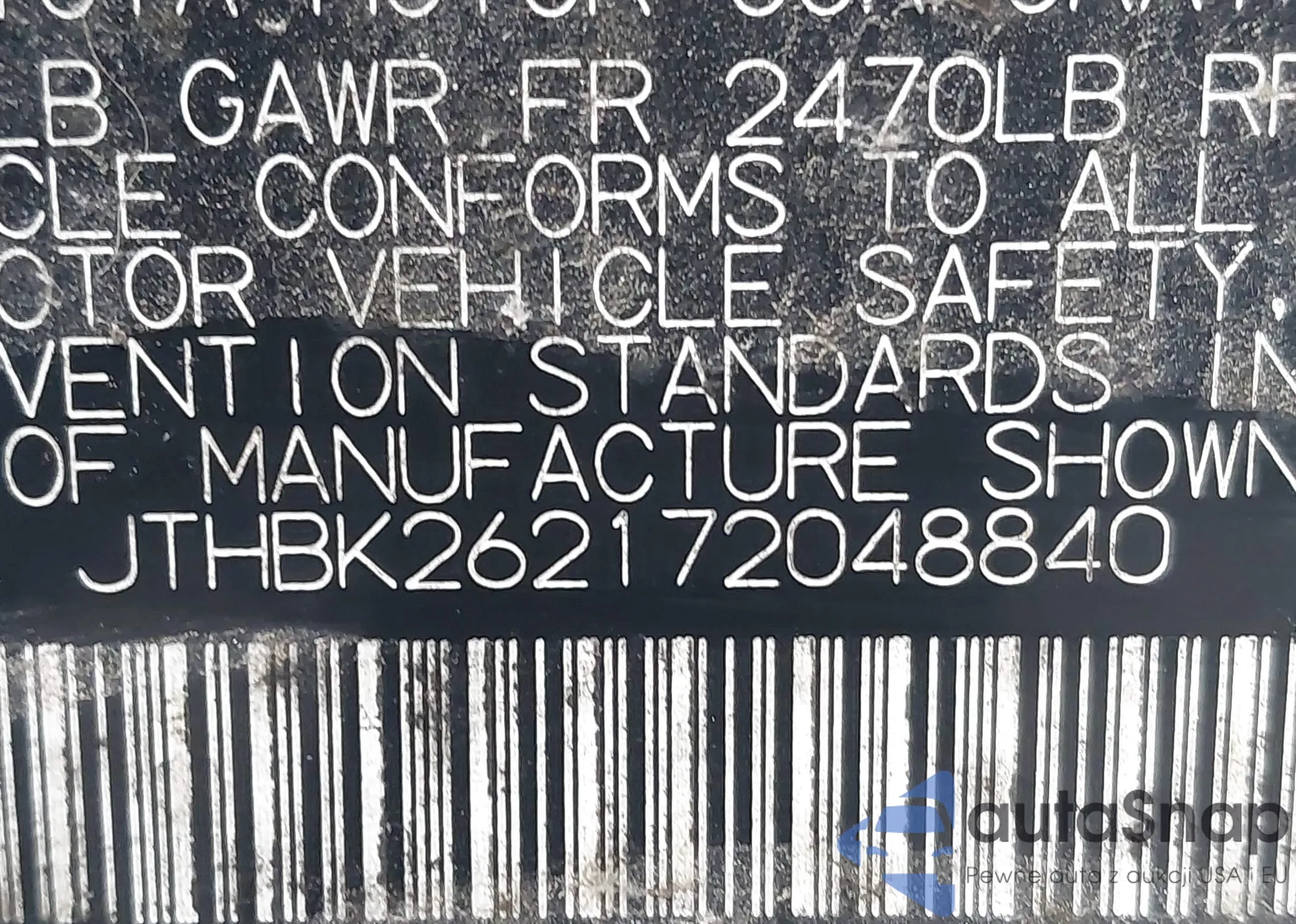 LOT: 44179431 VIN: JTHBK262172031746