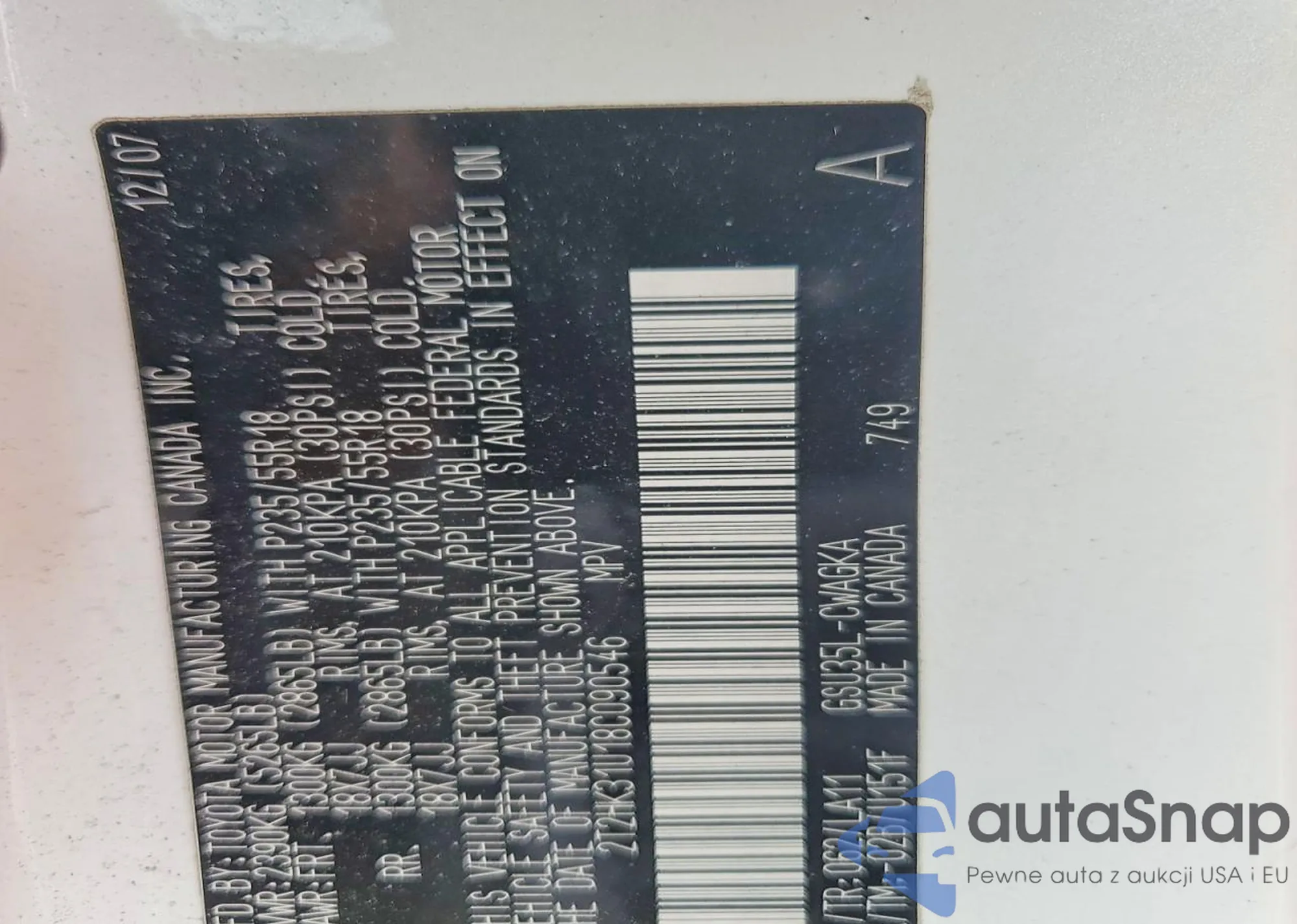 • VIN JTJBM7FX1A5000861