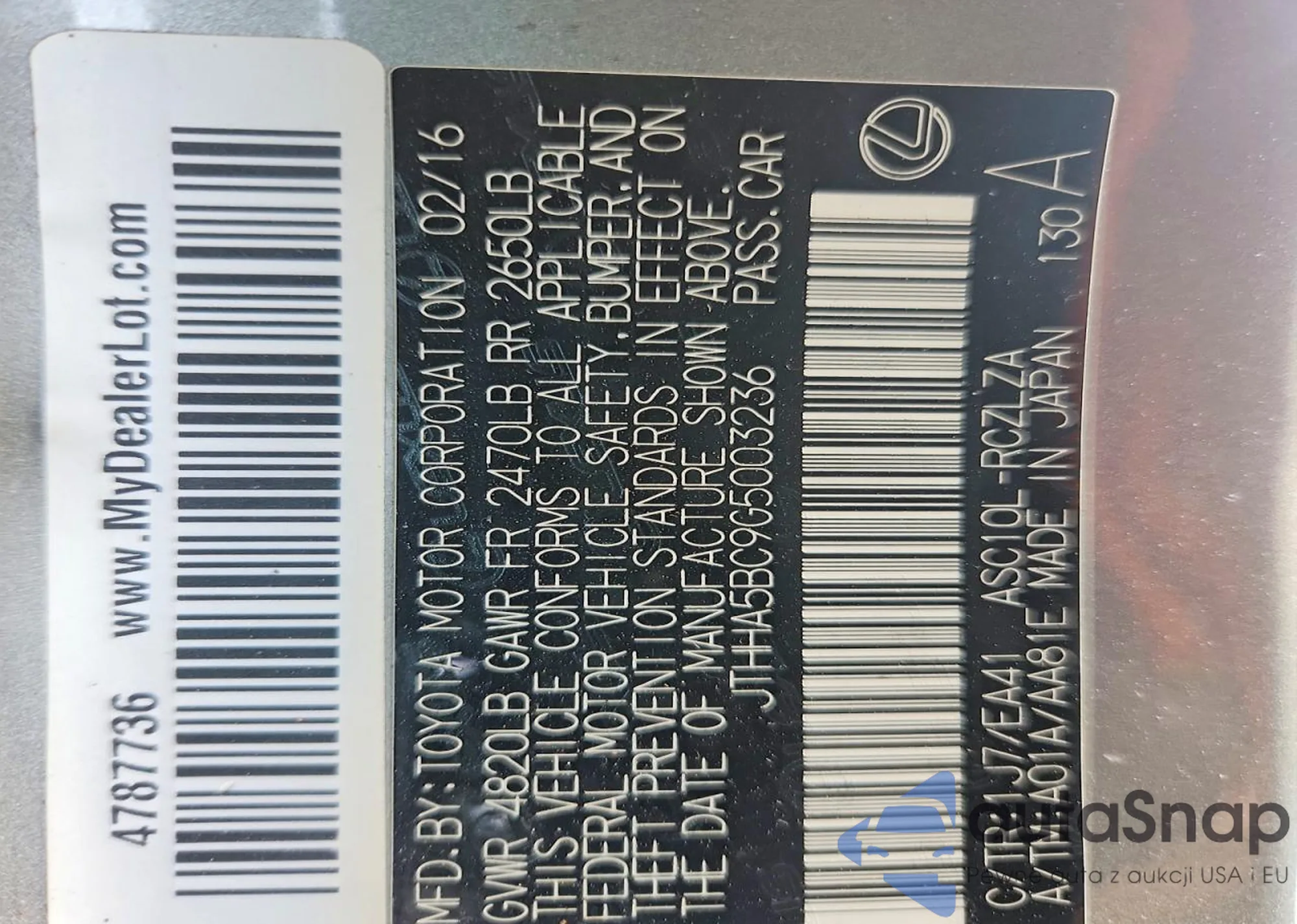 • VIN JTHHA5BC9G5003236