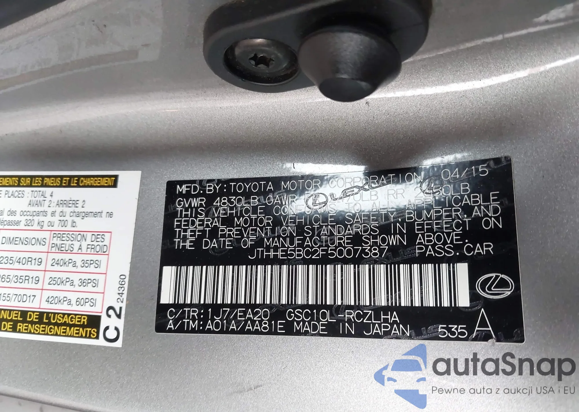 • VIN JTHHE5BC2F5007387