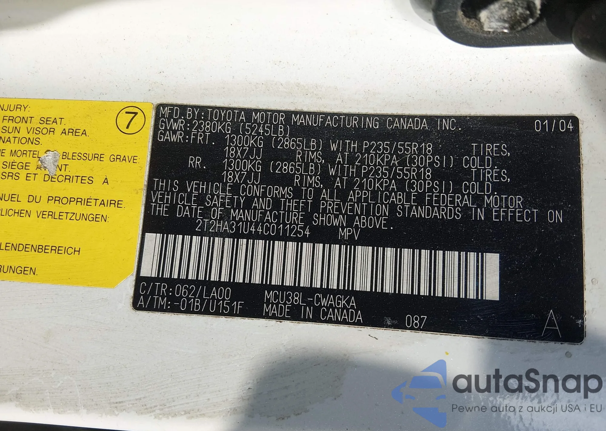 LOT: 44303864 VIN: 2T2HA31U95C080443