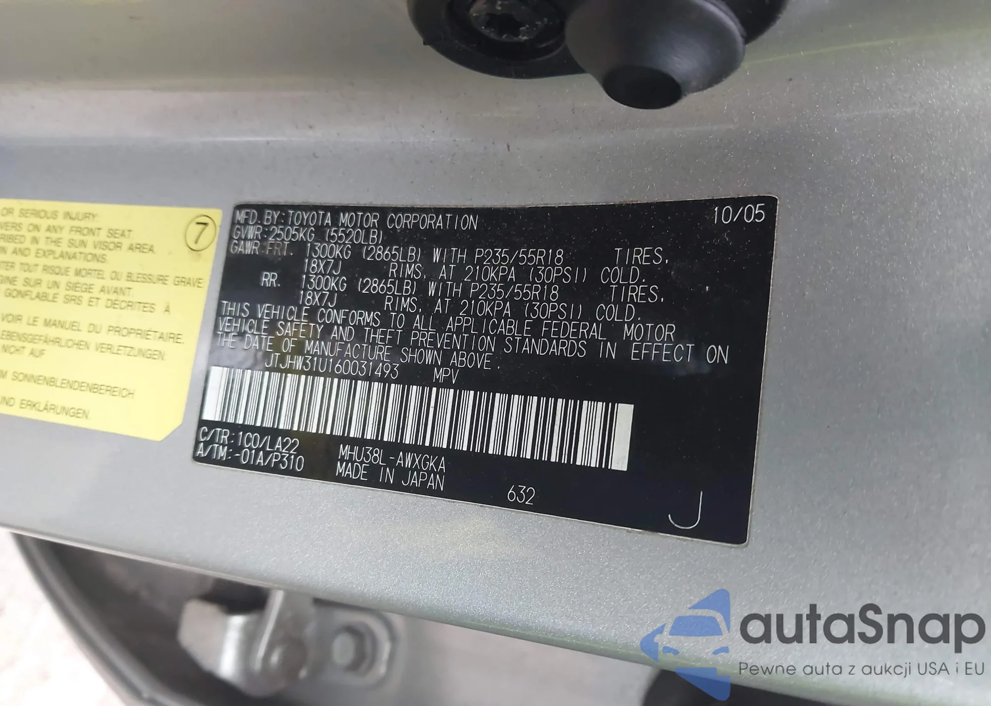 • VIN JTJHW31U160031493