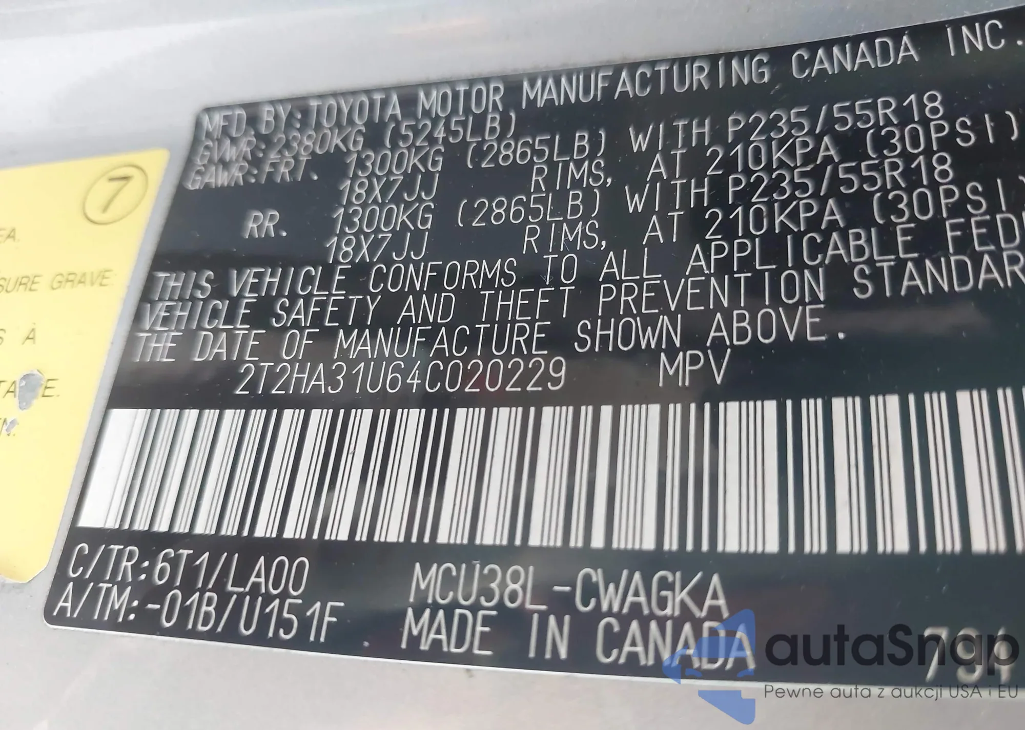 LOT: 44306053 VIN: 2T2GA31UX4C003901