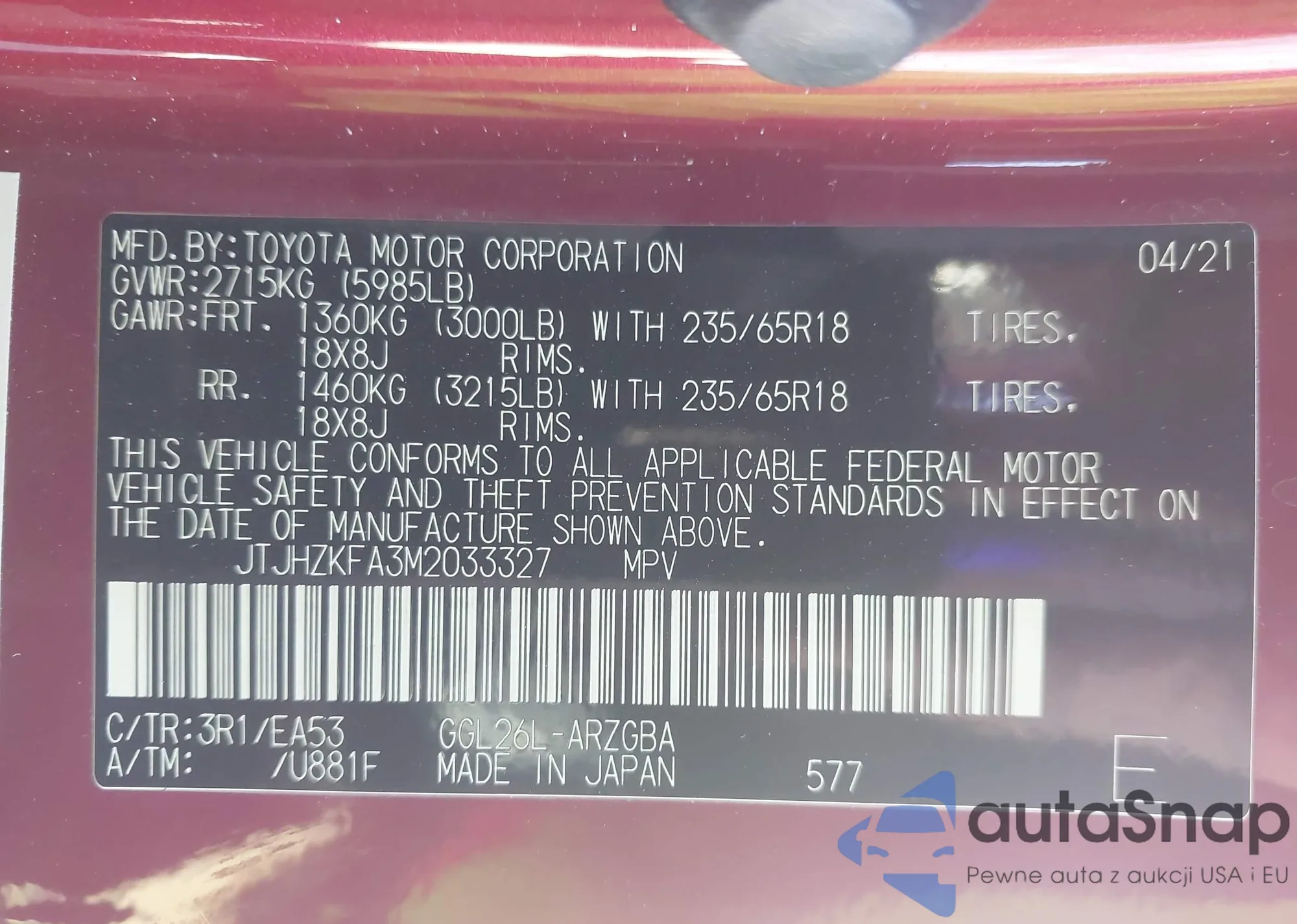 • VIN JTJHZKFA3M2033327