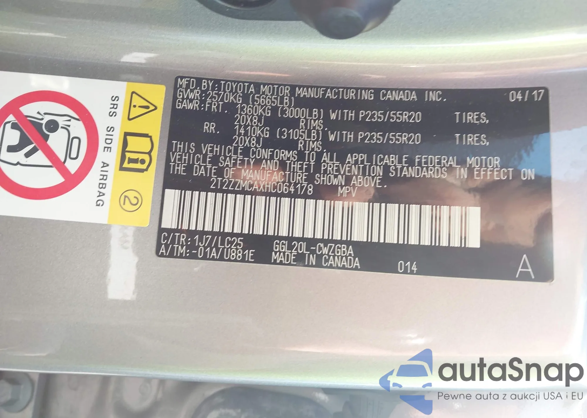 • VIN 2T2ZZMCAXHC064178