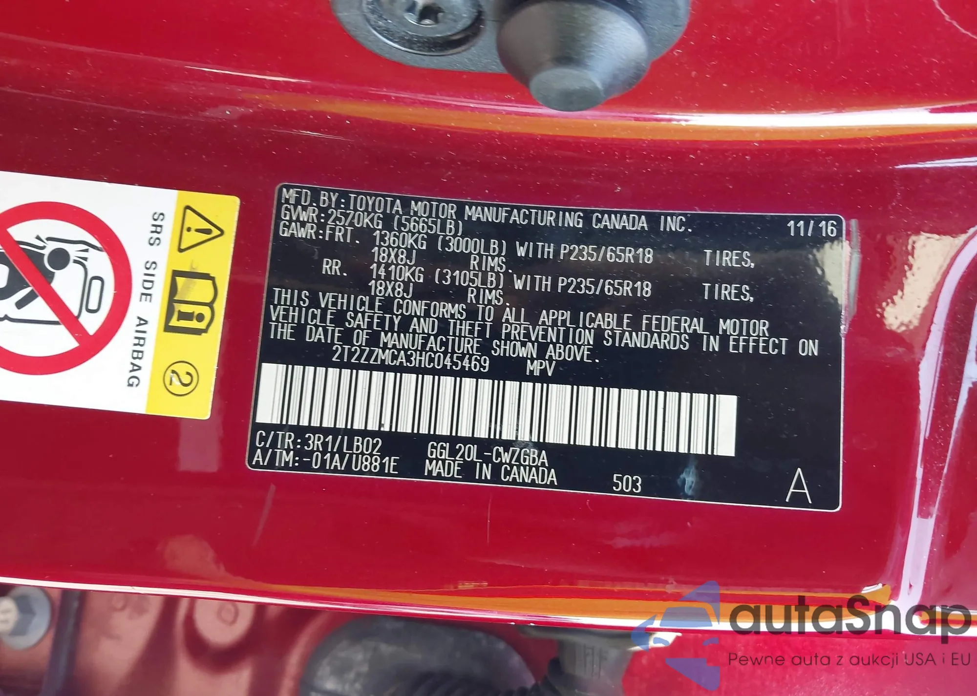 • VIN 2T2ZZMCA3HC045469