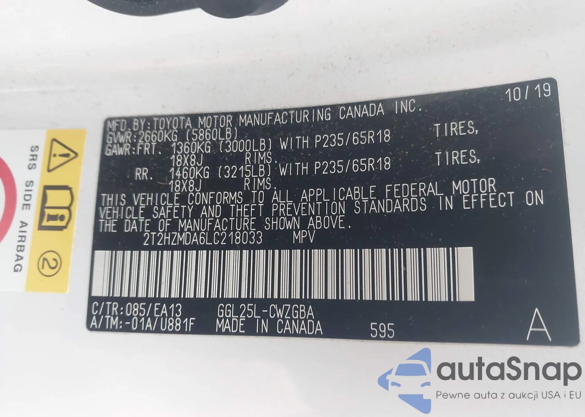 • VIN 2T2HZMDA6LC218033