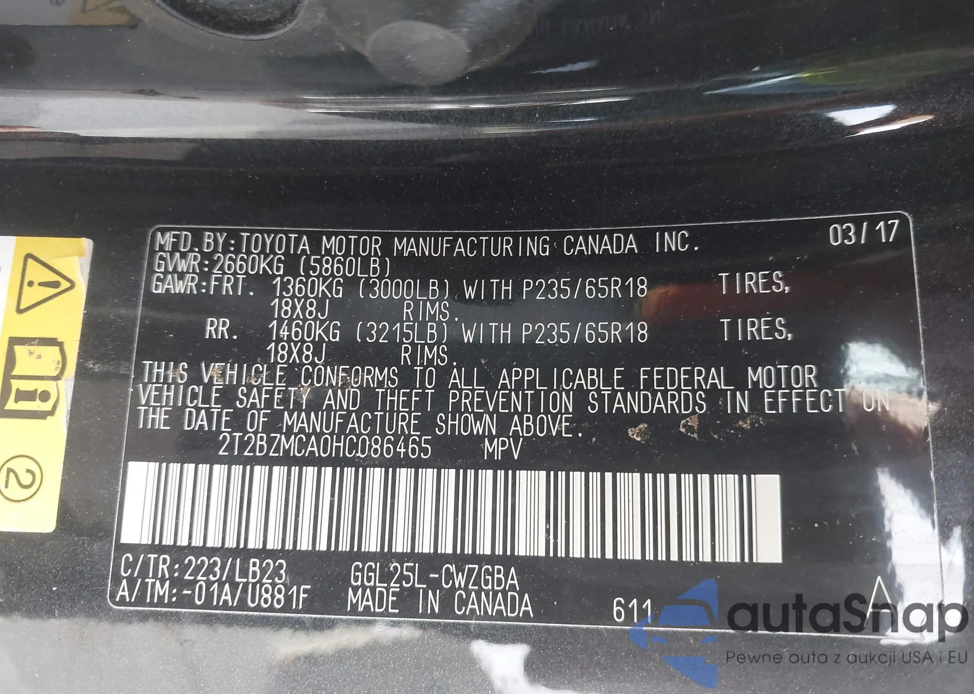 • VIN 2T2BZMCA0HC086465