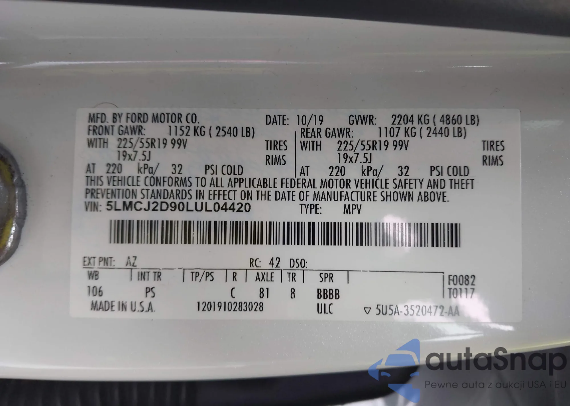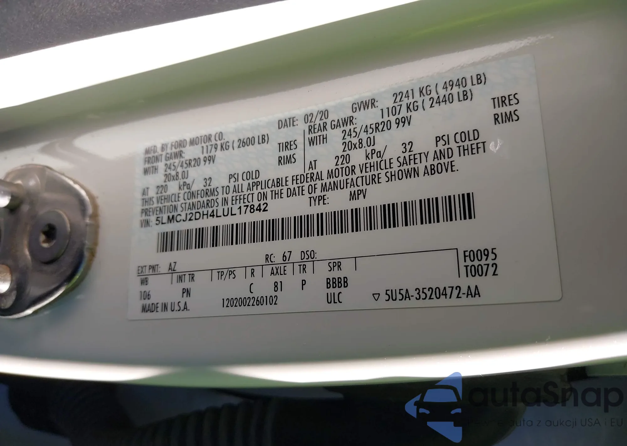 • VIN 5LMCJ2D90LUL04420
