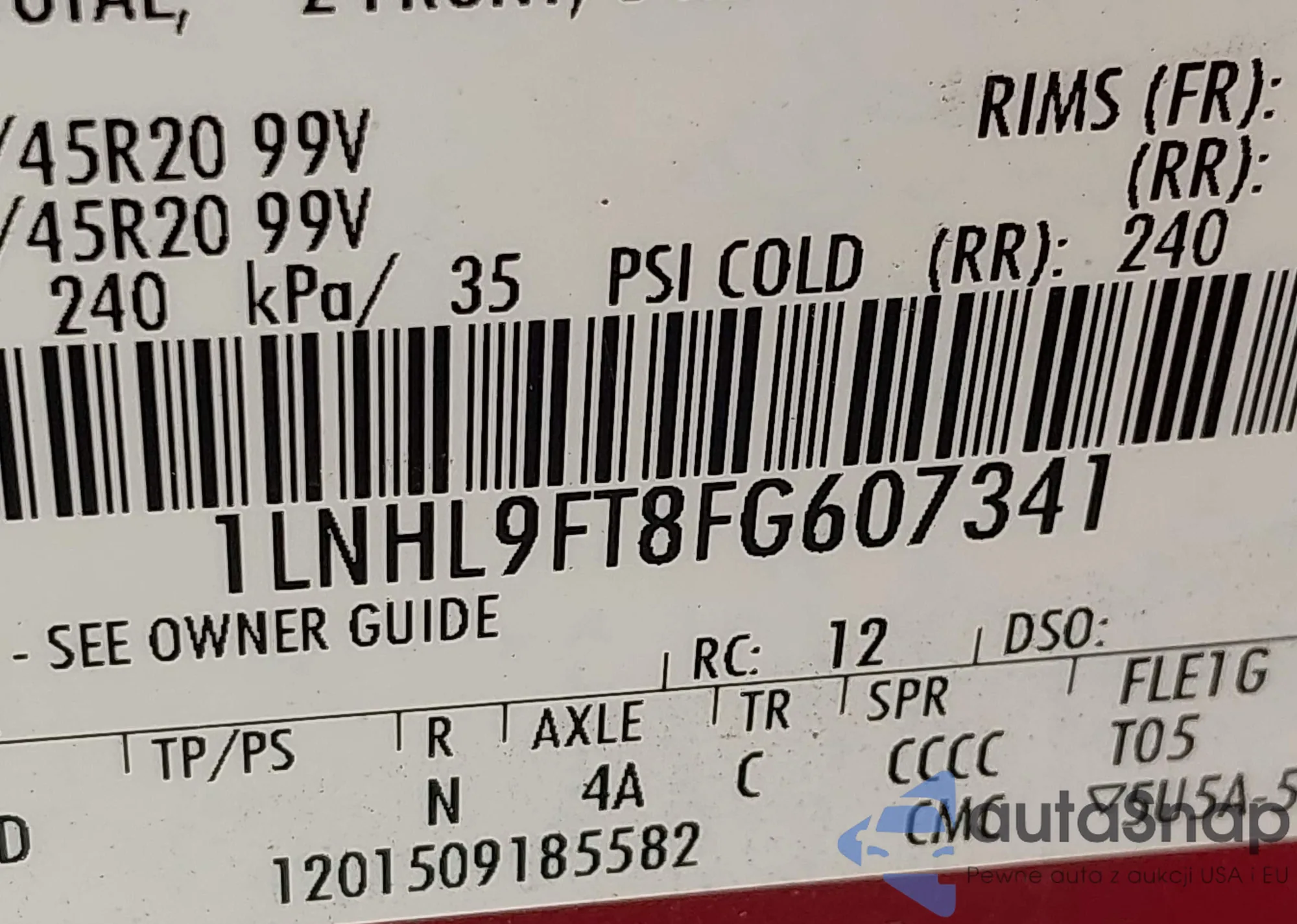 • VIN 1LNHL9FT8FG607341