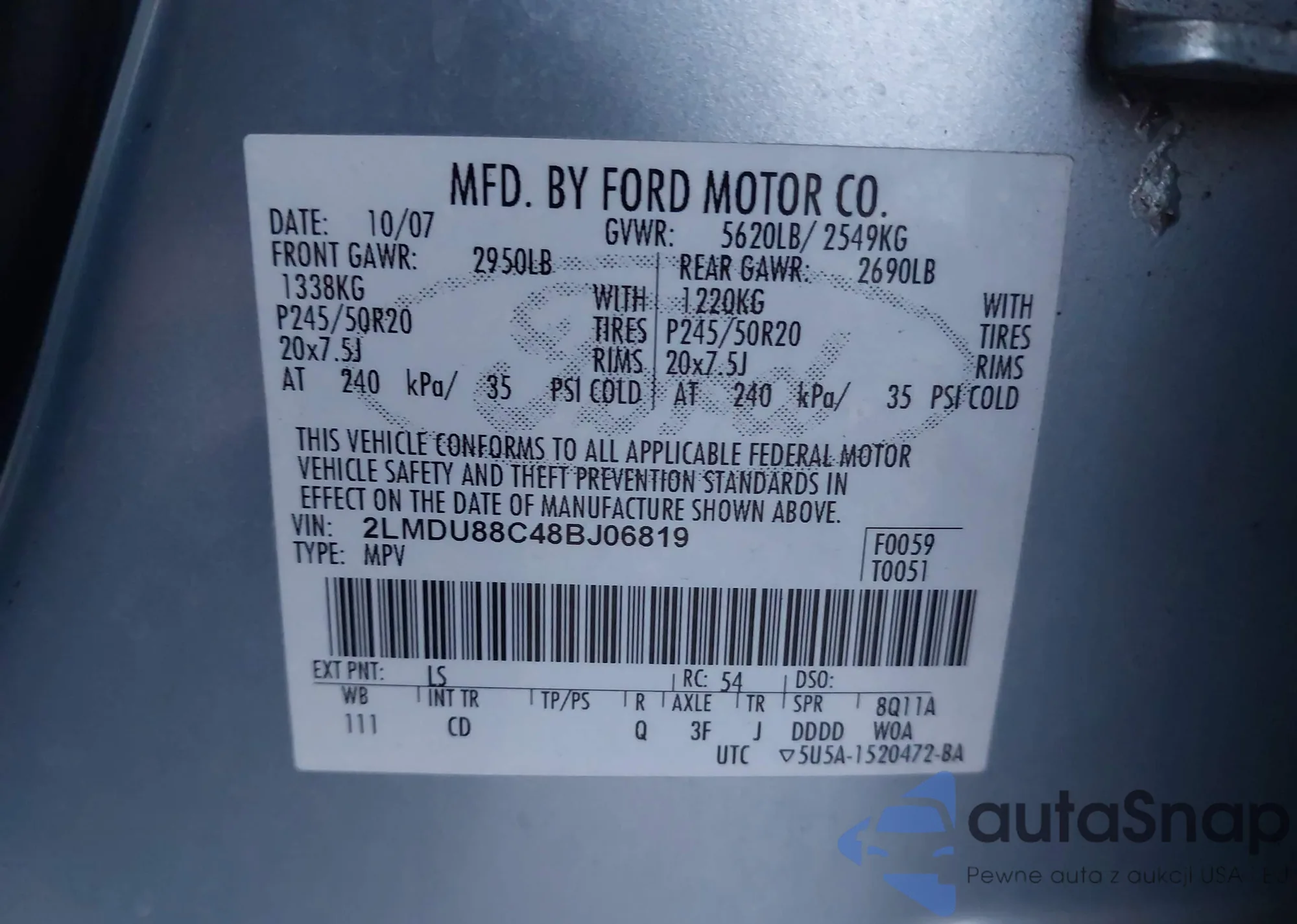 • VIN 2LMDU88C48BJ06819