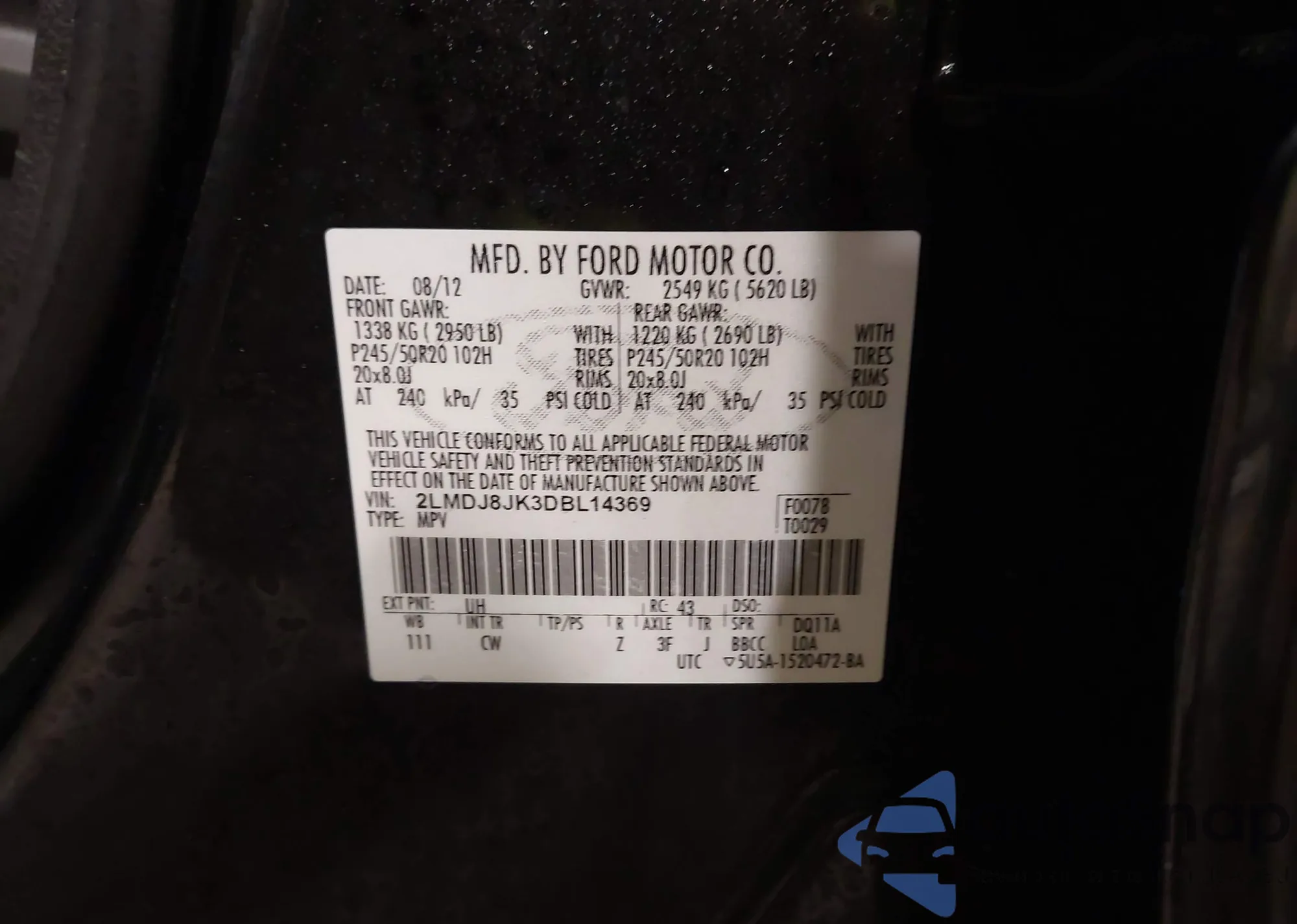 • VIN 2LMDJ8JK3DBL14369