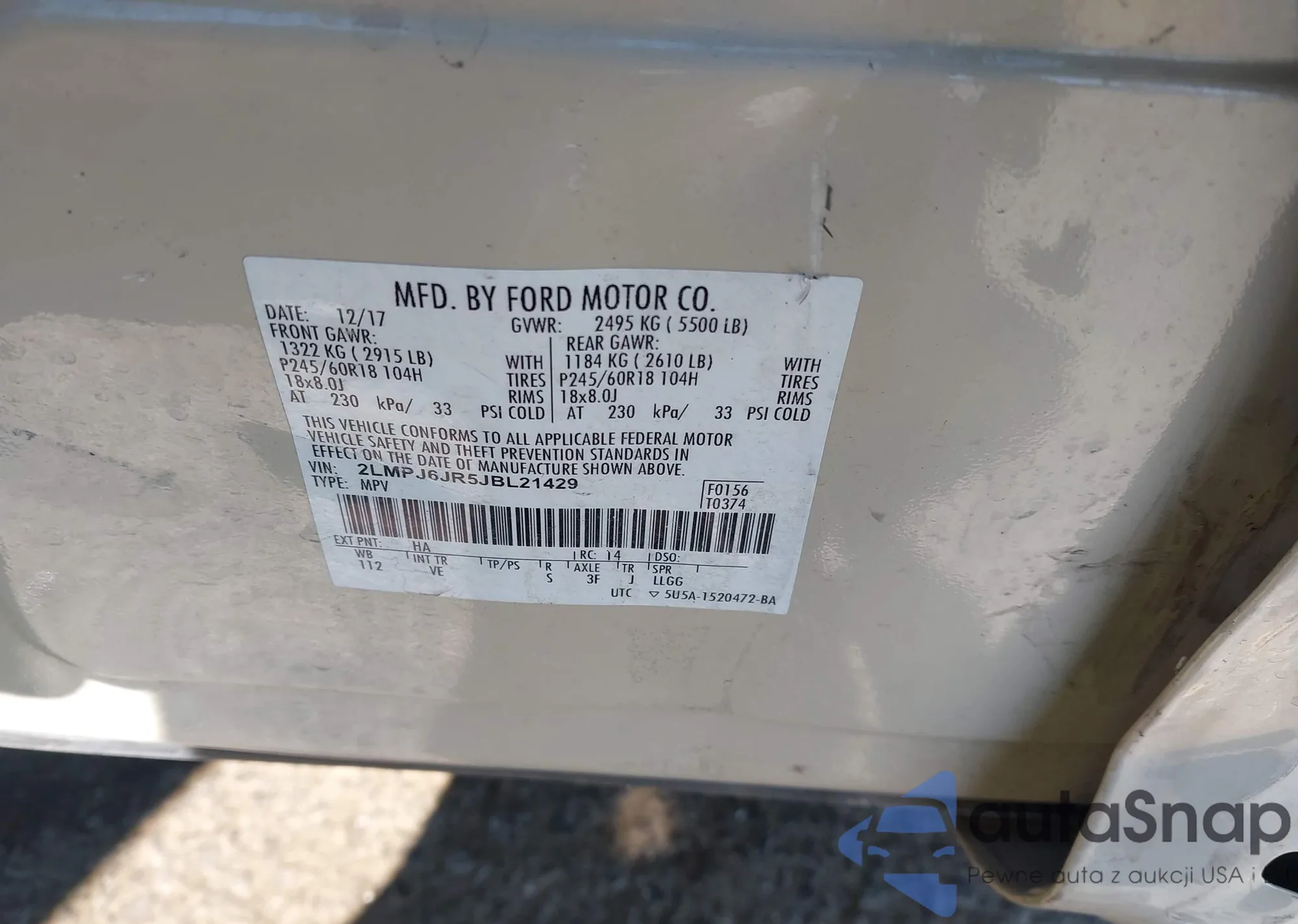 LOT: 43538590 VIN: 2LMPJ6JR5JBL21429