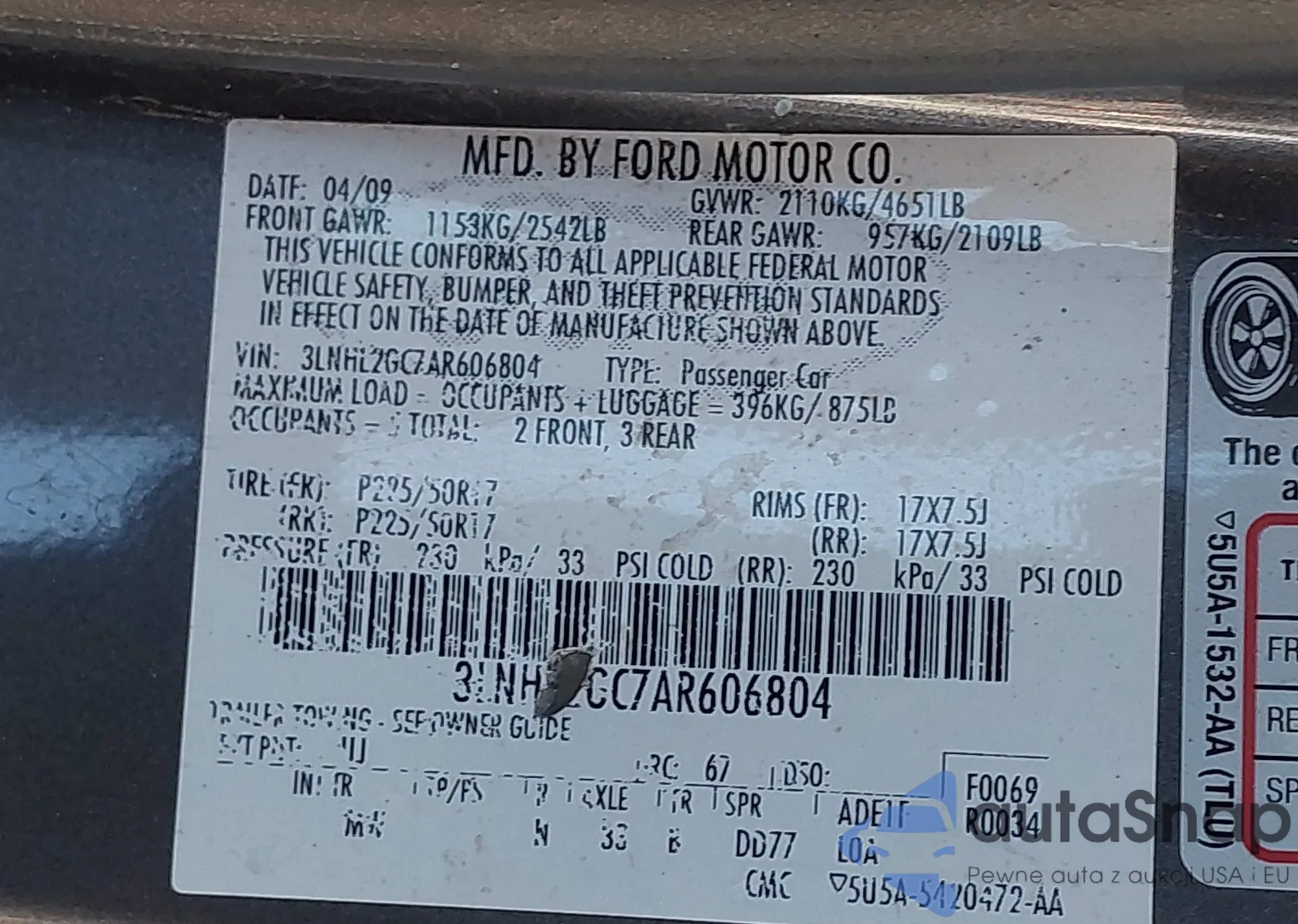 LOT: 43995075 VIN: 3LNHM26T59R635812