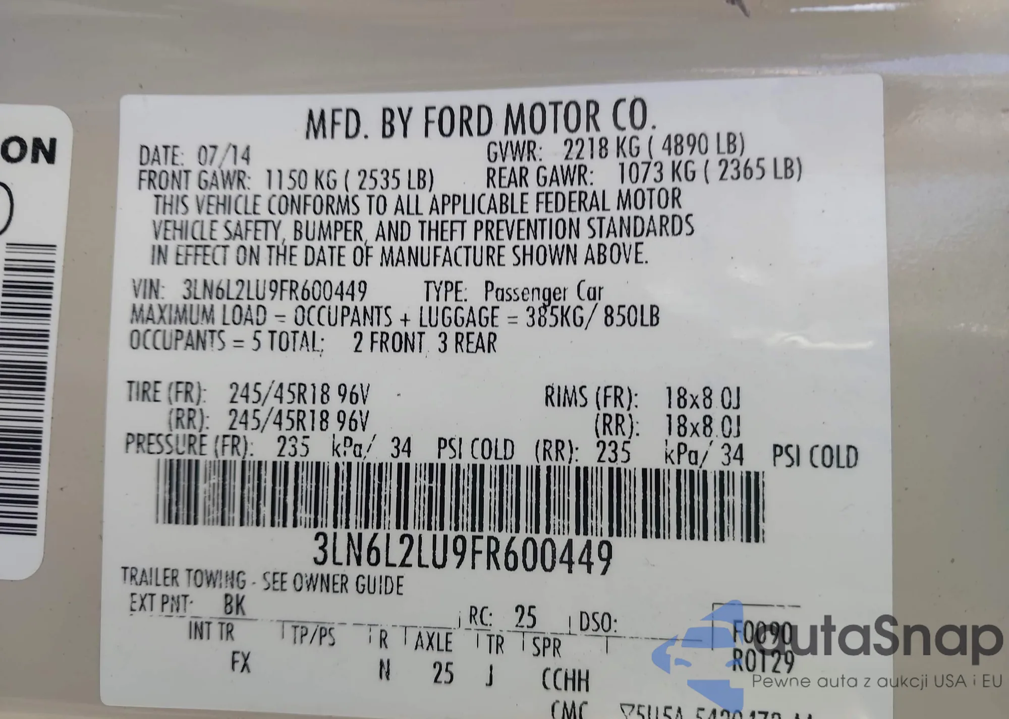 LOT: 44397229 VIN: 3LN6L2LU9FR600449