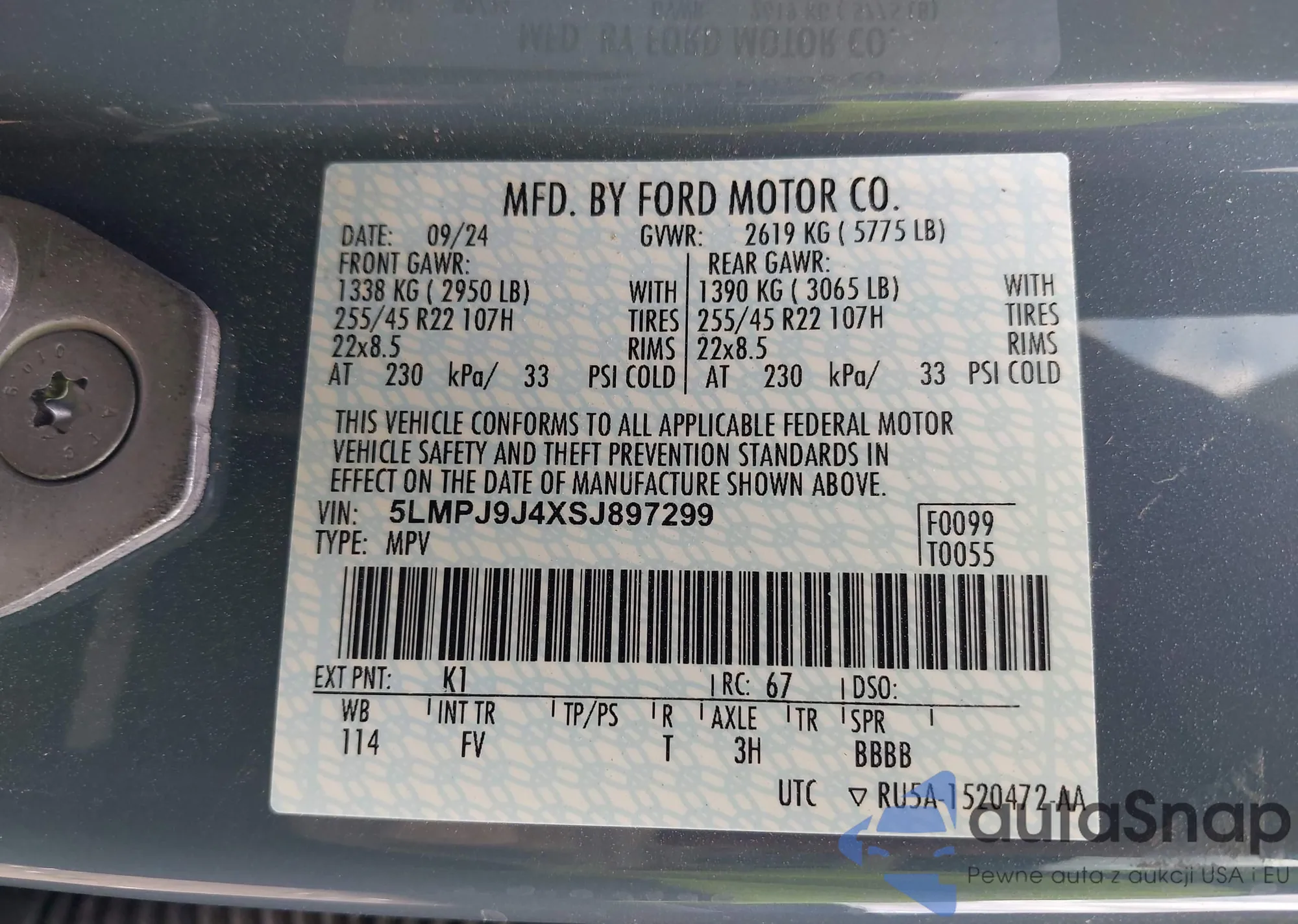 • VIN 5LMPJ9J4XSJ897299