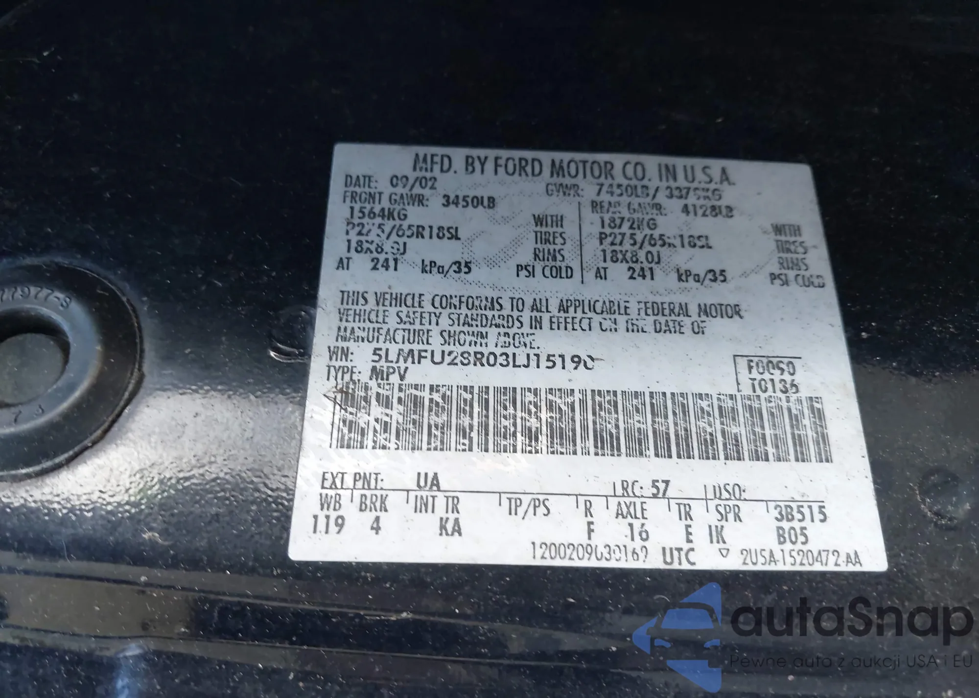 LOT: 44473935 VIN: 5LMFU28R03LJI5I90